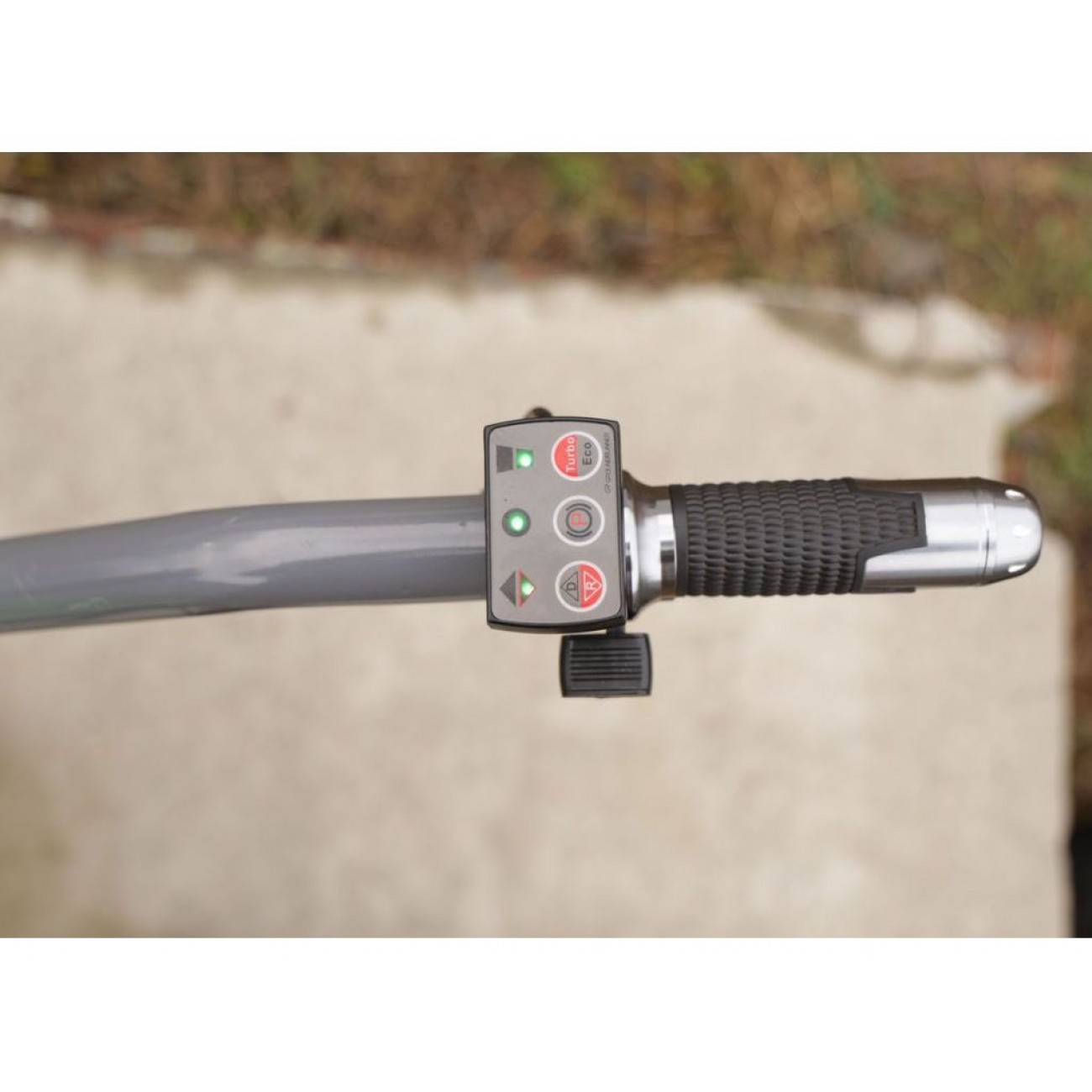 Управління такою тачкою дуже просте. Щоб почати рух чи зупинити тачку, достатньо натиснути кнопку. Елемент управління розташований на правій ручці, що дуже зручно.