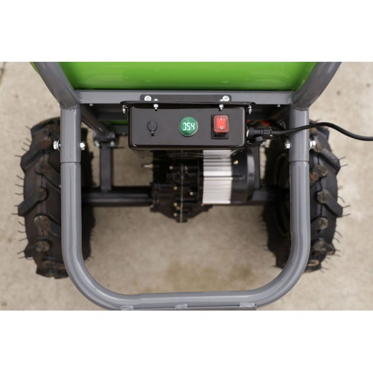 Тачка має передній і задній хід, а також функцію “Паркінг”. Може без перерви працювати до 8 годин, час зарядки акумулятора становить 3 години.
