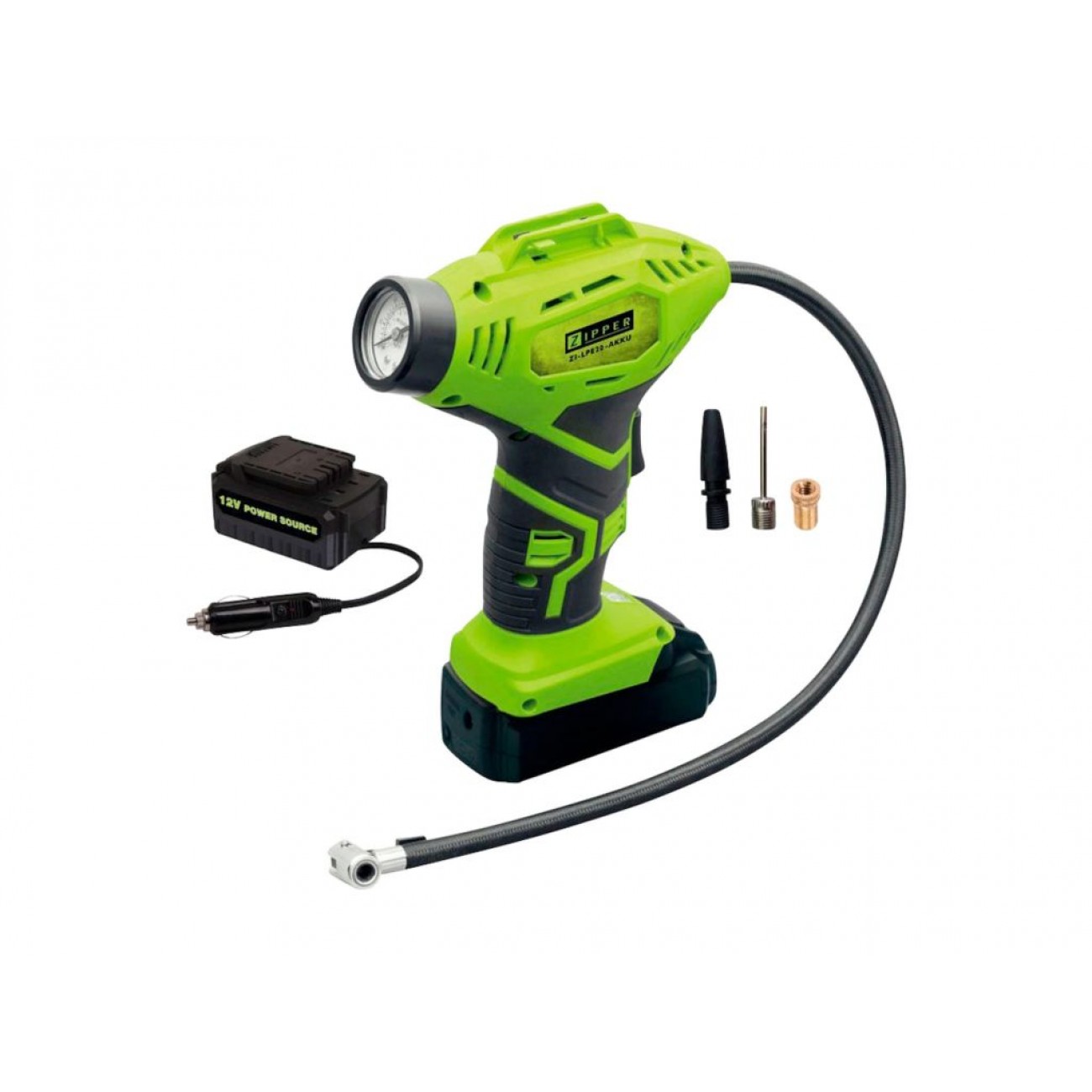 Акумуляторний насос-компресор Zipper ZI-LPE20-AKKU - це портативний пристрій для накачування автомобільних і велосипедних шин, надувних матраців, м’ячів та інших надувних виробів. Працює від акумулятора 18 В ємністю 1,3 Ач. Також є адаптер 12 В для під’єднання до прикурювача через шланг довжиною 2,8 м.