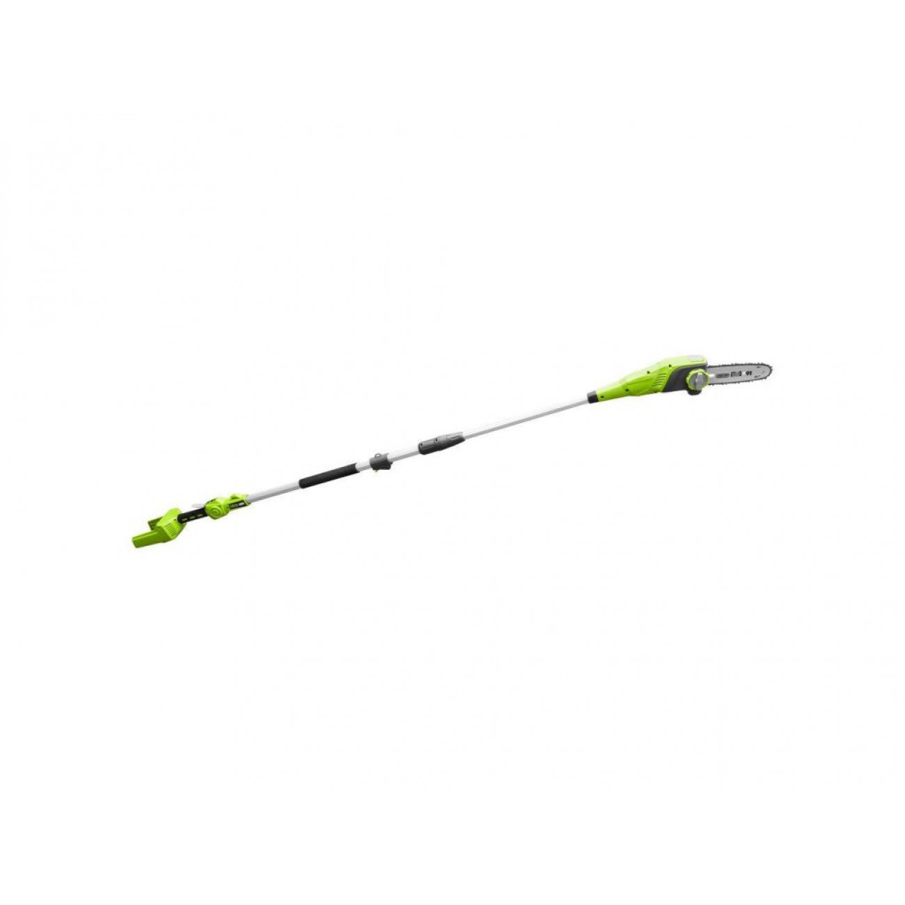 Телескопічна штанга має довжину 2000 мм і може подовжуватися ще на 430 мм, що дозволяє працювати на значній висоті. Вага інструмента всього 4 кг та оптимально збалансоване розташування двигуна й акумулятора забезпечують надзвичайну зручність використання, а низький рівень шуму (близько 97 дБ) дозволяє використовувати цей садовий висоторіз у житлових зонах без дискомфорту для оточуючих. Акумулятор і зарядний пристрій в комплект поставки не входять!