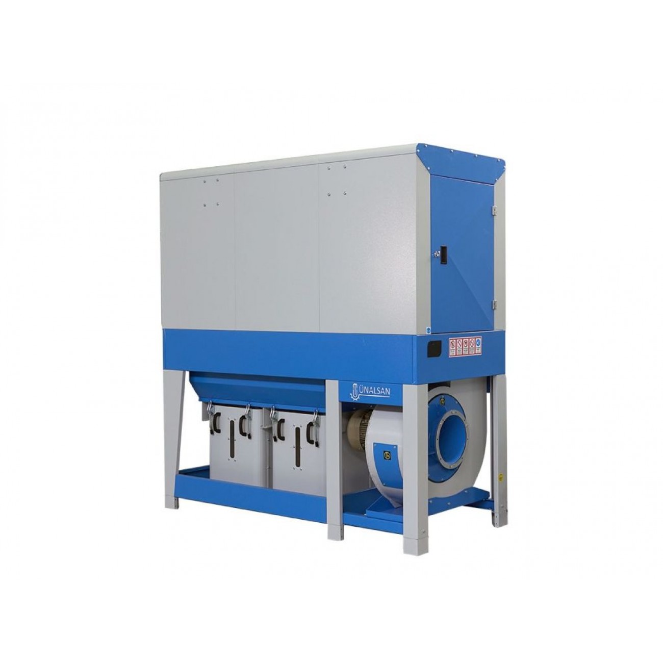 Пил і відходи від деревини збираються в викатні металеві бункери, які також встановлені на поворотних пластикових колесах, для зручності їх подальшого спорожнення. На кожному бункері є великі оглядові вікна для візуального контролю їх наповнення.