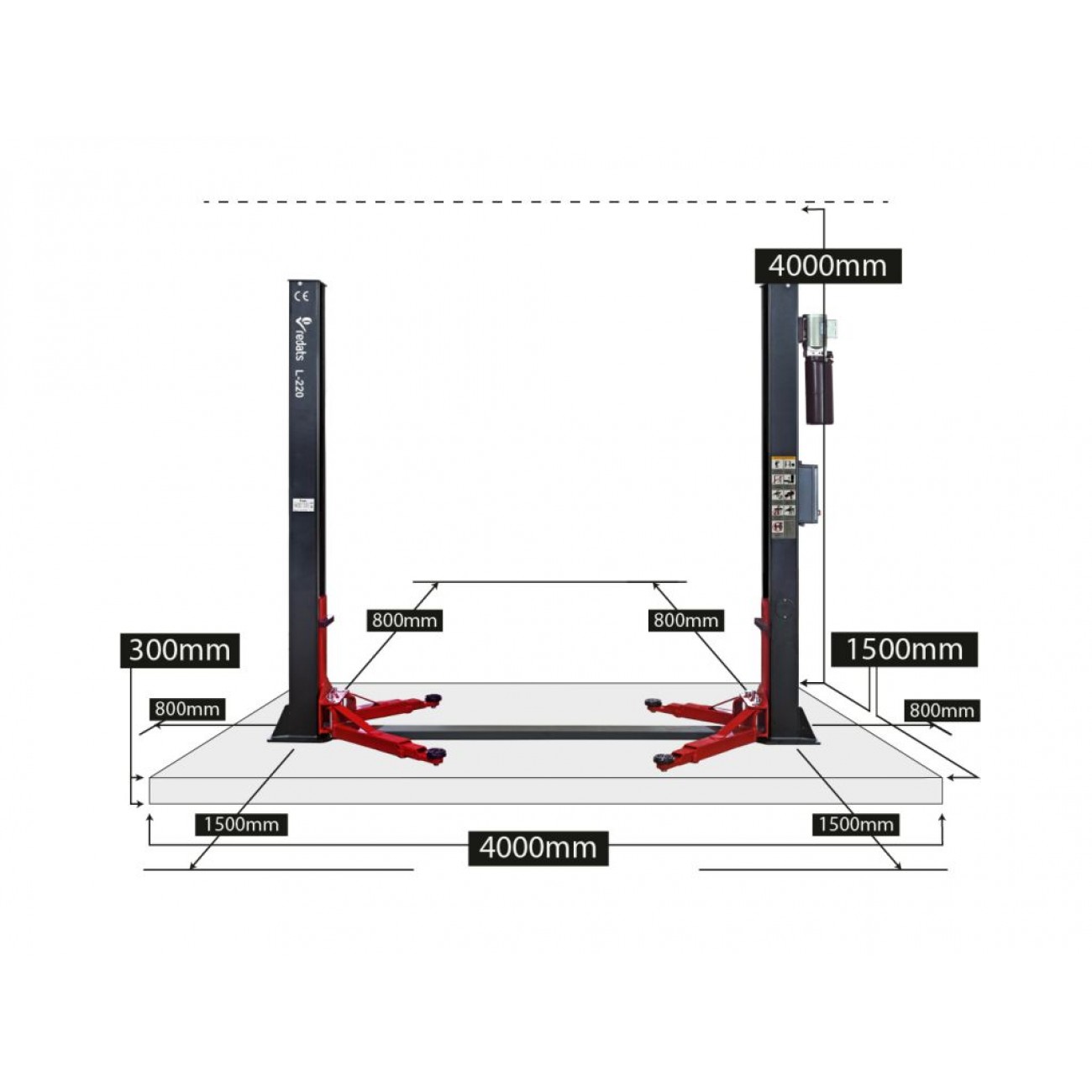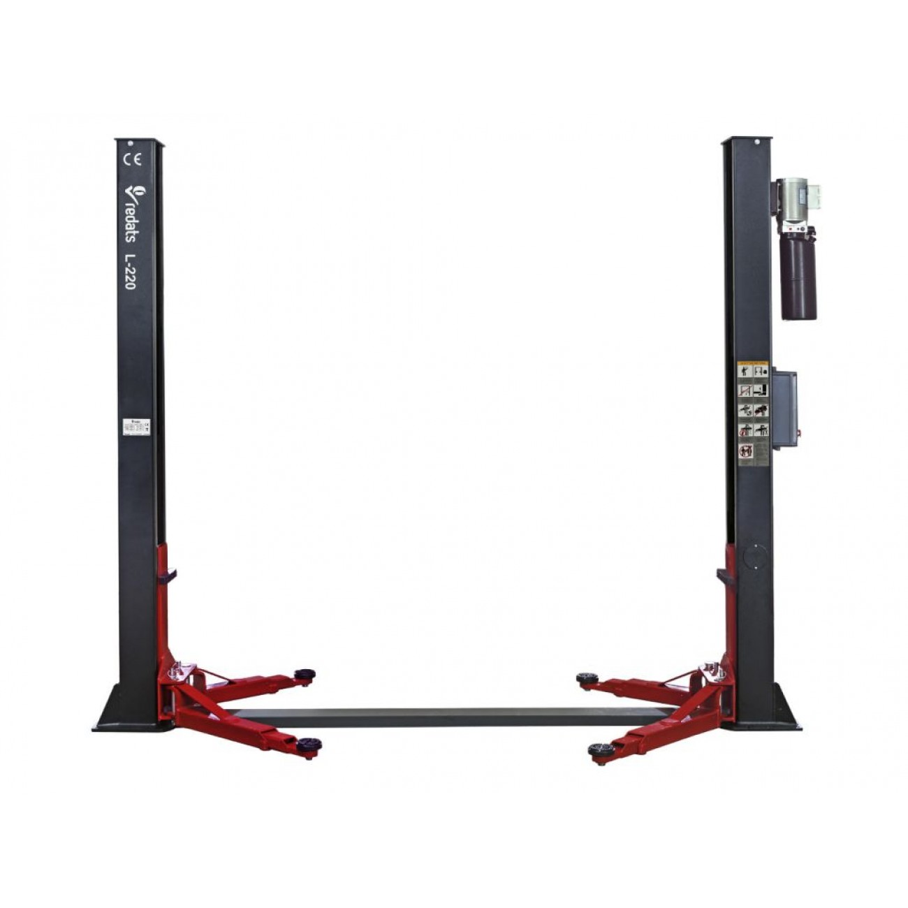 Автоматичний двостійковий підйомник REDATS L-220 з вантажопідйомністю 4 тонни, міцною, надійною конструкцією та швидким підйомом і опусканням буде відмінним вибором для автосервісів з великим потоком автомобілів. Підходить для обслуговування не лише легкових автомобілів, а й мікроавтобусів та легкої комерційної техніки. Нижня балка висотою 9 см дозволяє зручно працювати з низькими авто. Максимальна висота підйому становить 193 см. Максимальна ширина автомобіля - 2500 мм. Складані стрічки підйомника дають змогу ефективно обслуговувати довгі авто.