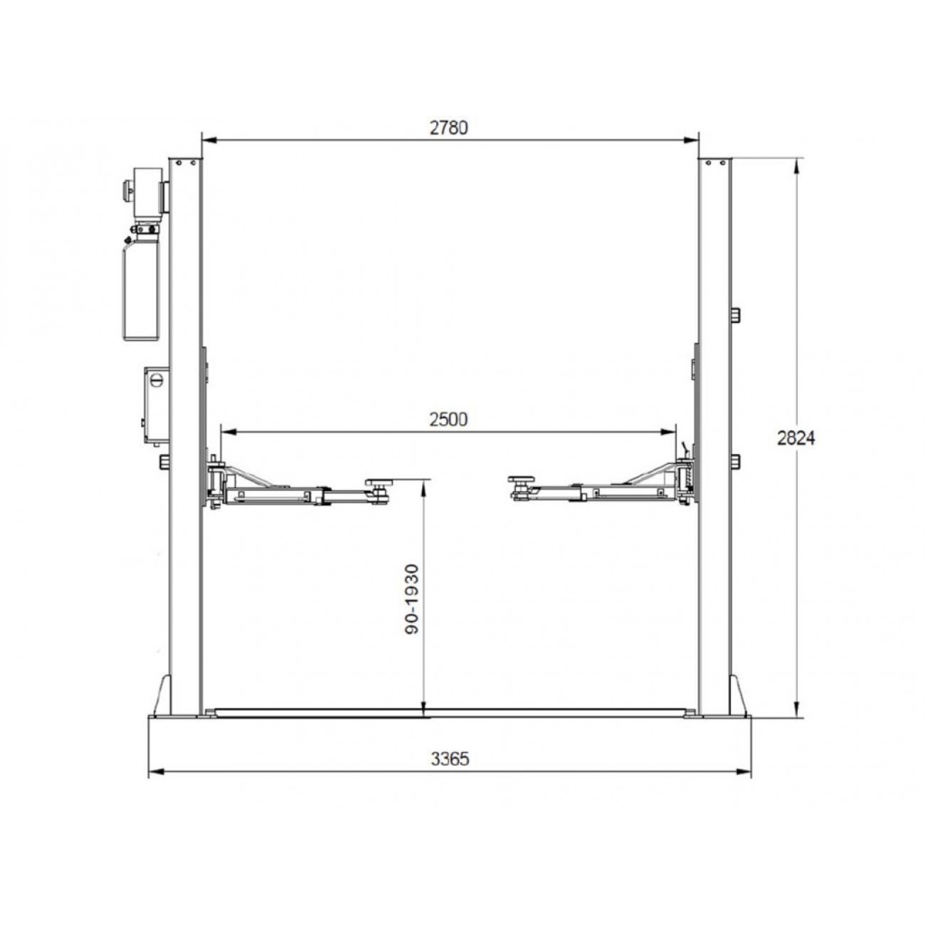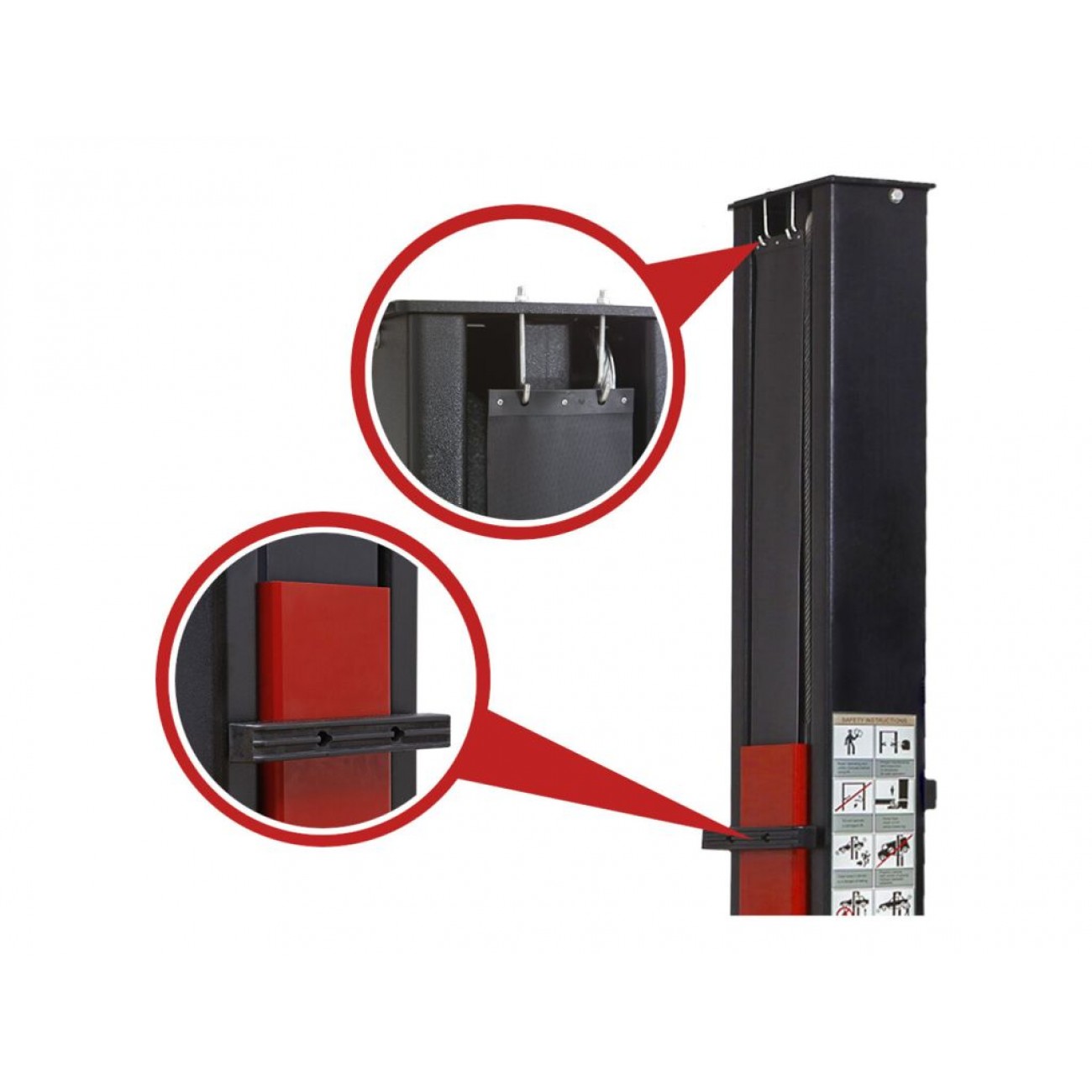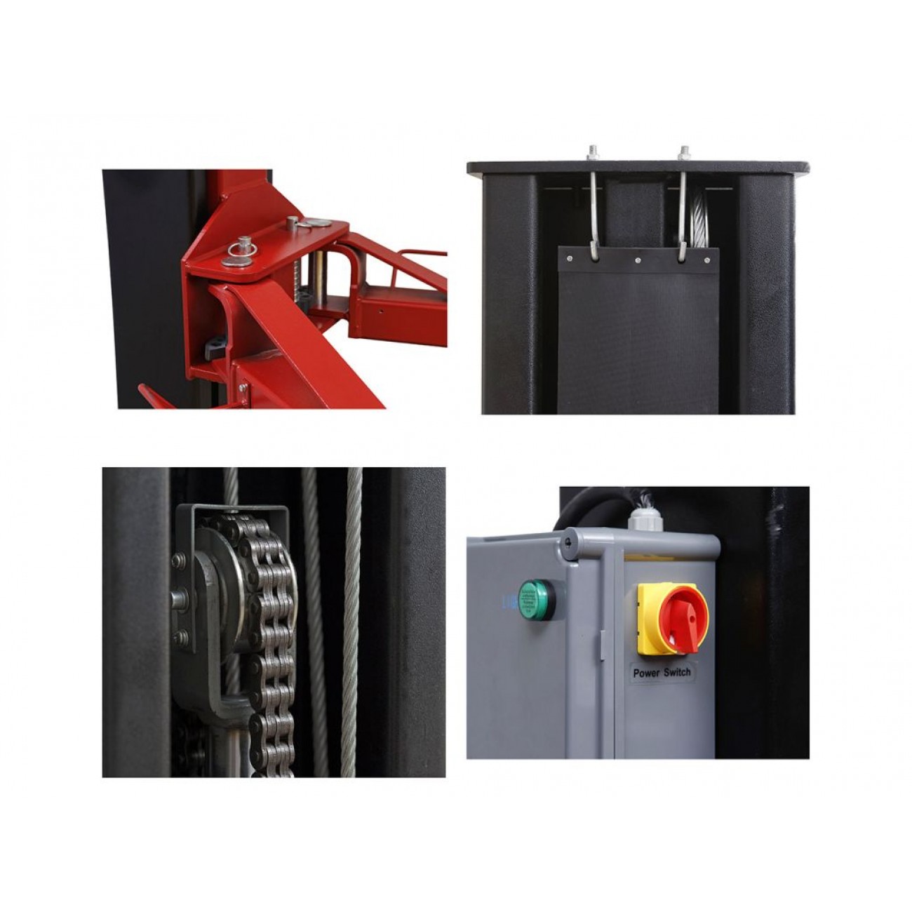 Підйом займає усього 55 с, опускання - 25 с. Електродвигун потужністю 2,2 кВт і проста панель керування (підйом, опускання, опускання в нижнє положення) роблять цей автопідйомник для СТО надзвичайно зручним і легким у використанні.