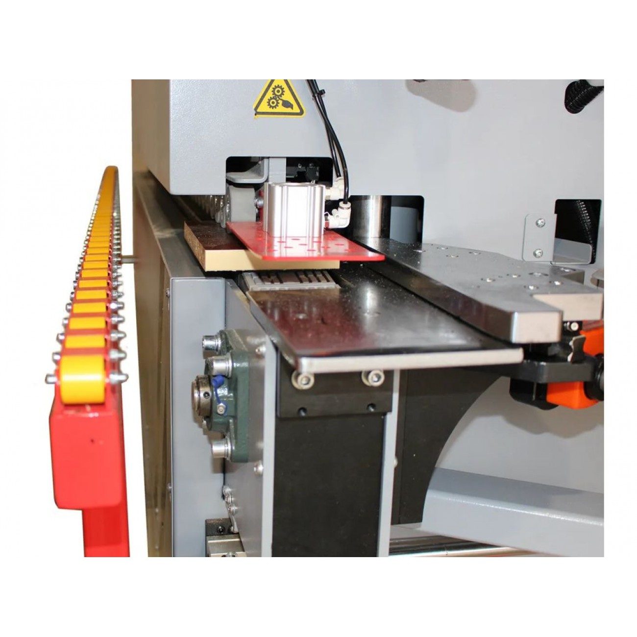 •  Складається з двох пресувальних роликів, що забезпечують, надійну фіксацію кромочного матеріалу на торець заготовки.