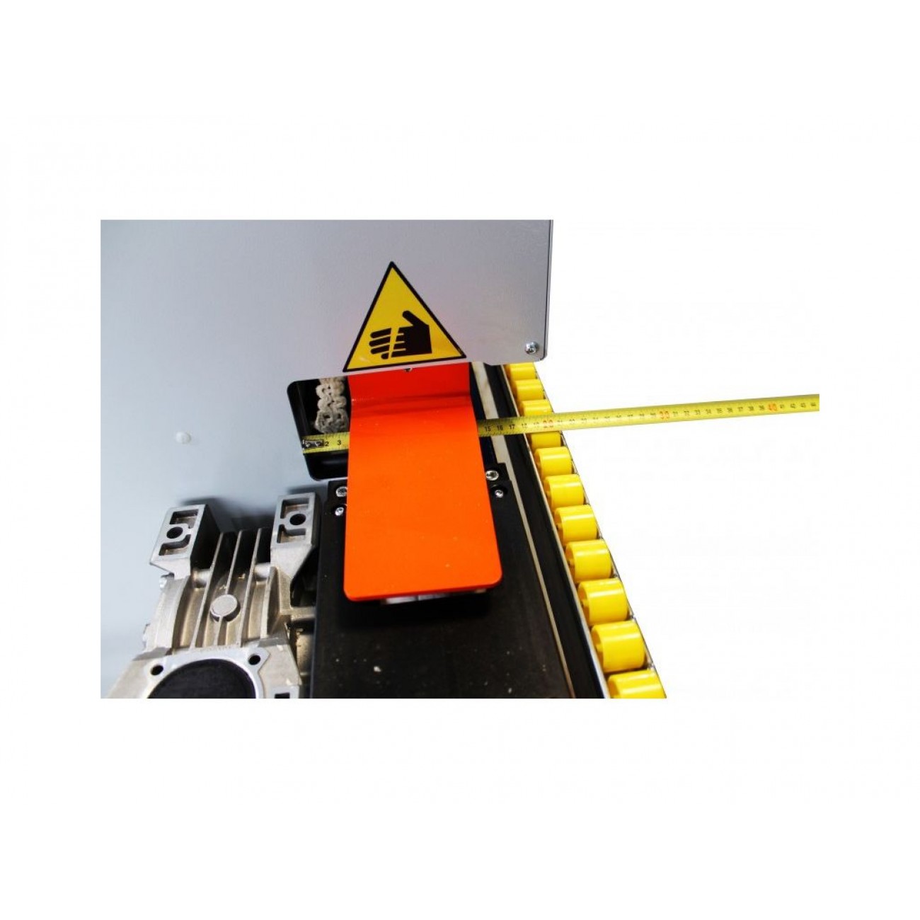 Деталь подається ланцюговим конвеєром з гумованими накладками. Ширина накладок 73 мм. Привід-мотор-редуктор 2,2 кВт VARVEL.