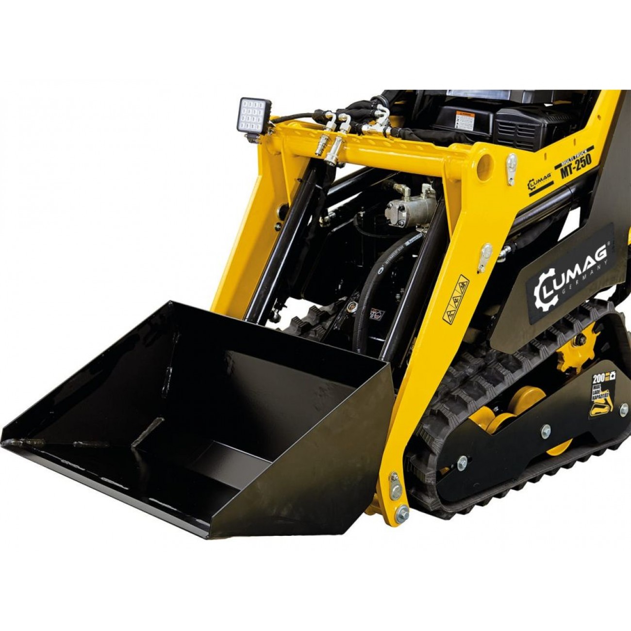 Lumag MT250 оснащений надійним двигуном, який забезпечує стабільну потужність для виконання складних завдань. Його продуктивність забезпечує надійне транспортування матеріалу по нерівній місцевості та схилах. Система приводу забезпечує відмінне зчеплення з дорогою, завдяки чому MT250 підходить для роботи як у вологих, так і в сухих умовах.