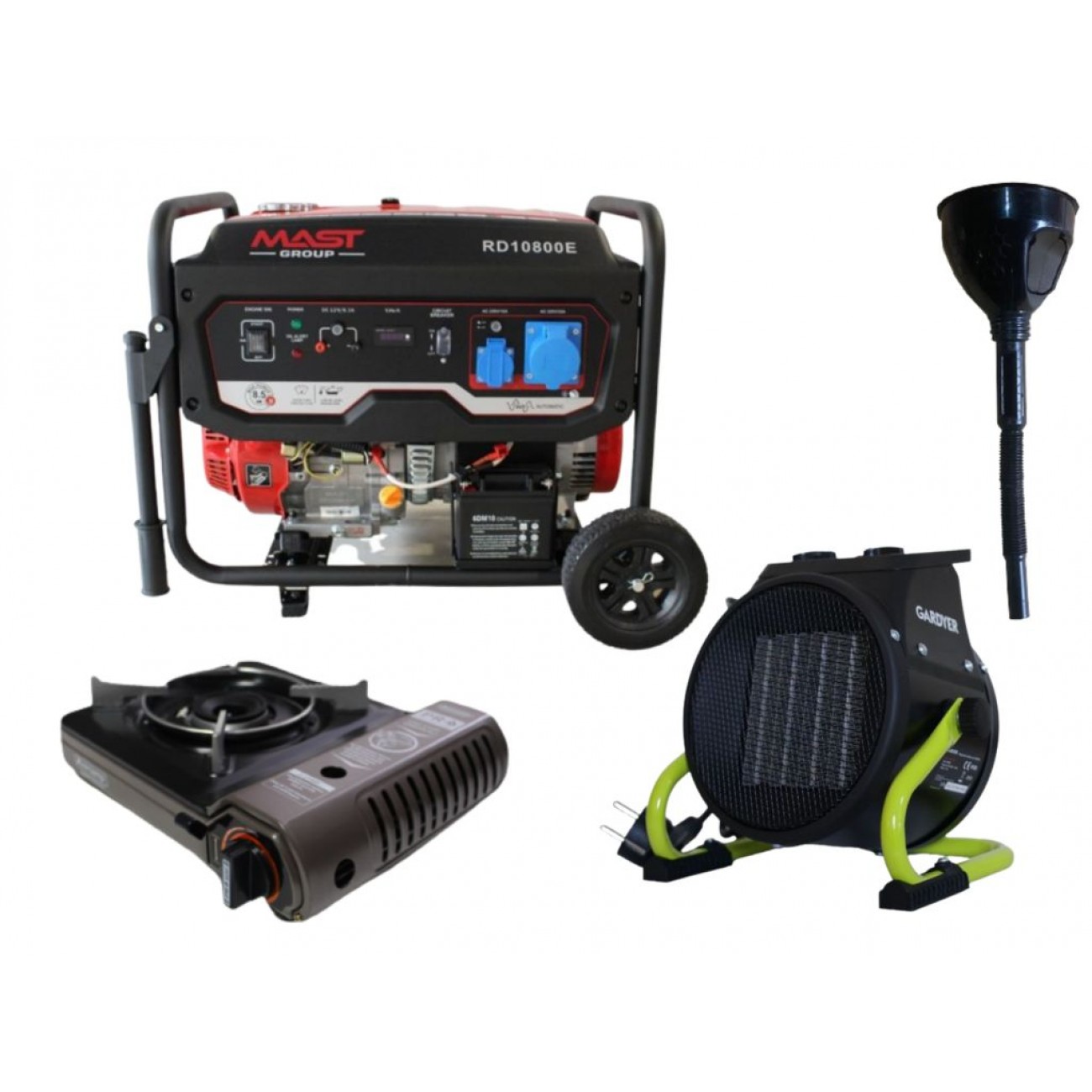 Основні характеристики Бензиновий генератор MAST GROUP RD10800E + газова плитка Orcamp CK-505 + електричний обігрівач Gardyer HE2000