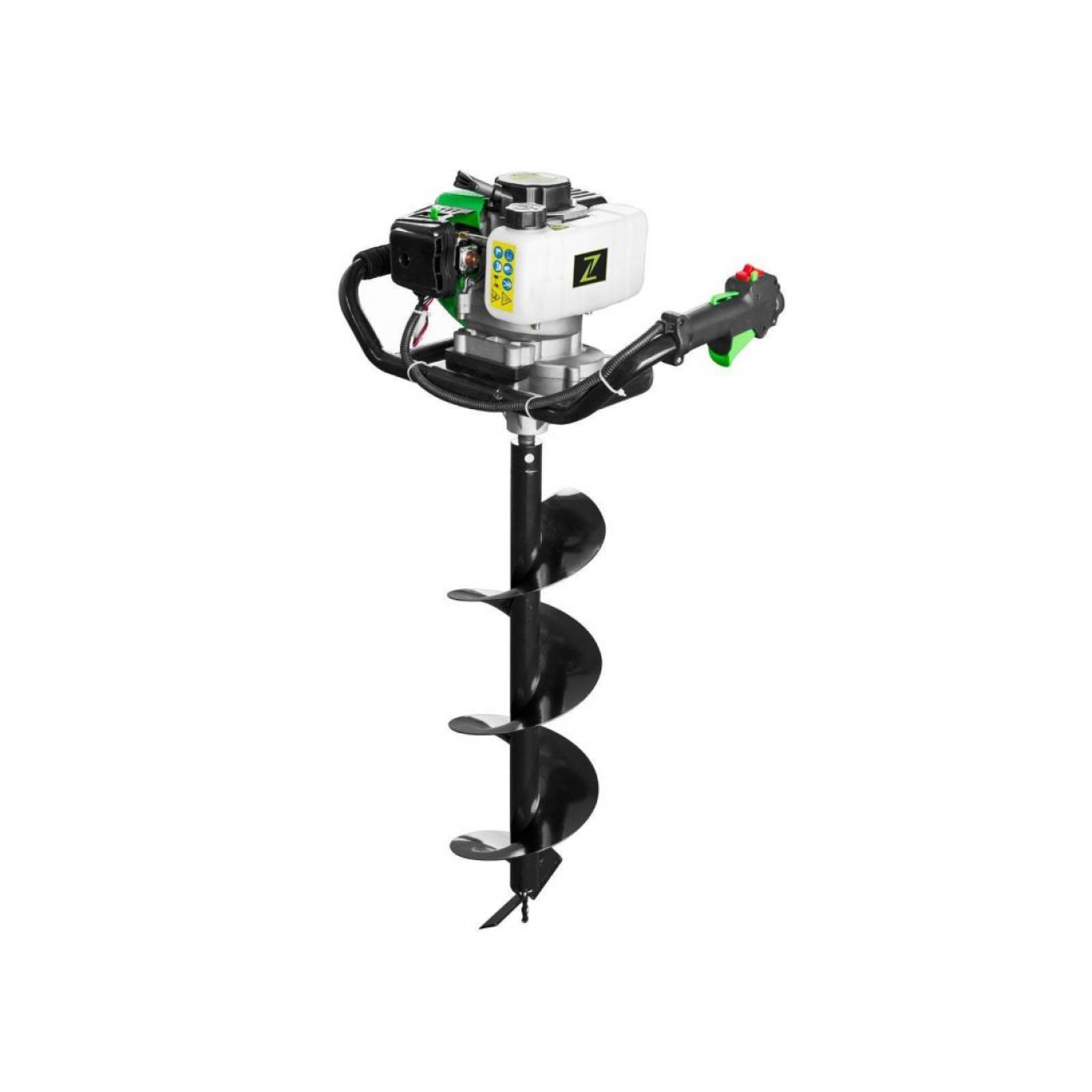 Бензобур Zipper ZI-ELB70 - це зручний інструмент для буріння отворів у грунті під різні задачі (встановлення опор і стовпів, посадка дерев тощо), який працює на базі двотактного бензинового двигуна об'ємом 51,7 куб.см. Швидкість обертання - 3000 об/хв. Об’єм паливного бака 1,2 л і повітряне охолодження двигуна дозволяють тривалу роботу без вимушених зупинок. Легко запускається в роботу за допомогою ручного старту. У даній моделі використовується циліндричний редуктор, відомий своєю простотою та надійністю.