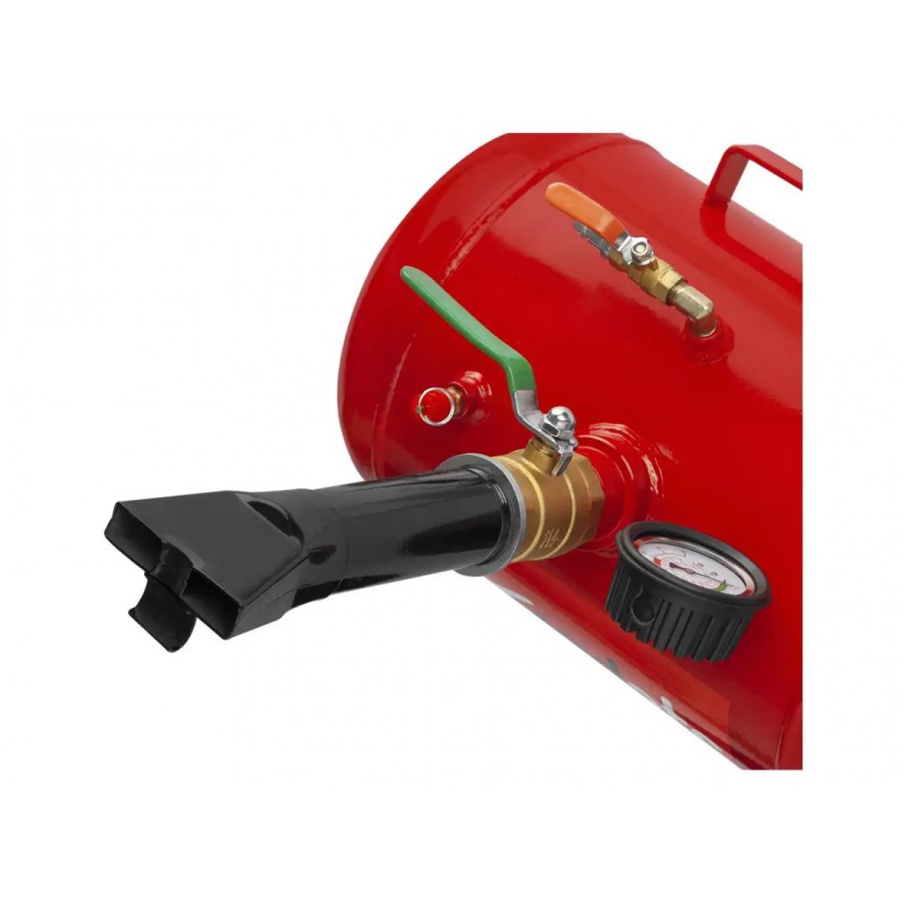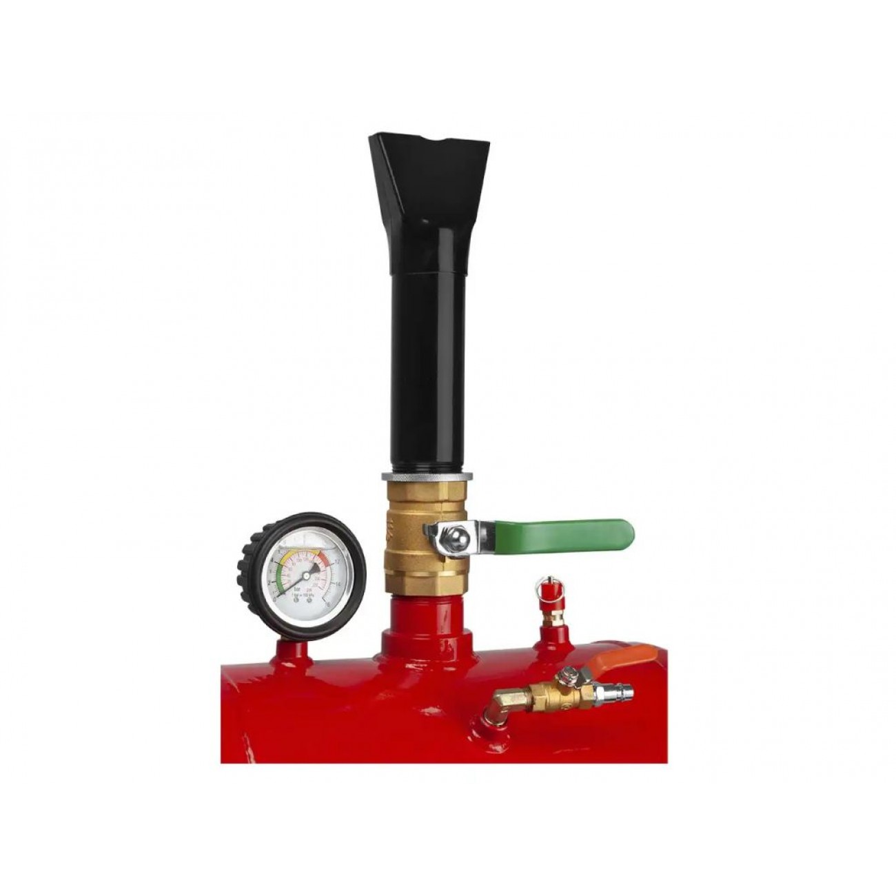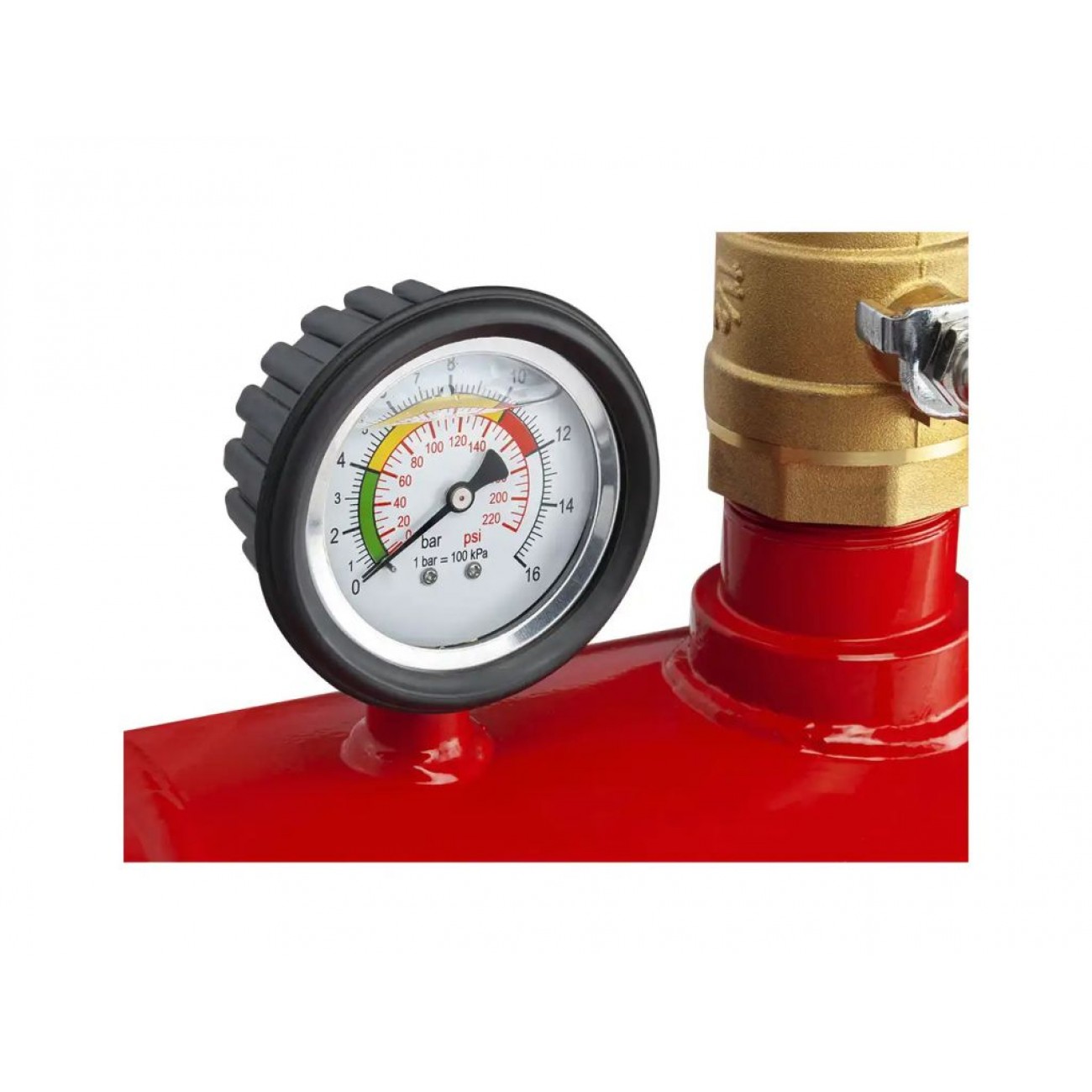 Легко читабельний манометр дає змогу точно контролювати поточний тиск, а запобіжний клапан забезпечує безпечне скидання надлишкового тиску. Вся робота повністю автоматизована - достатньо просто натиснути на важіль. Конструкція виготовлена з якісної сталі, має компактний розмір, невелику вагу і ручку для перенесення, що робить цей бустер шиномонтажний зручним і практичним.