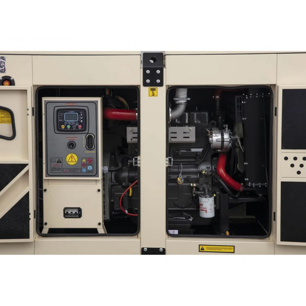 В комплекті:блок аварійного вводу резерву та підігрівач охолоджуючої рідини, генератор виготовлений з оцинкованої сталі та покритий порошковою фарбою, що робить його стійким до корозії та зовнішніх факторів.