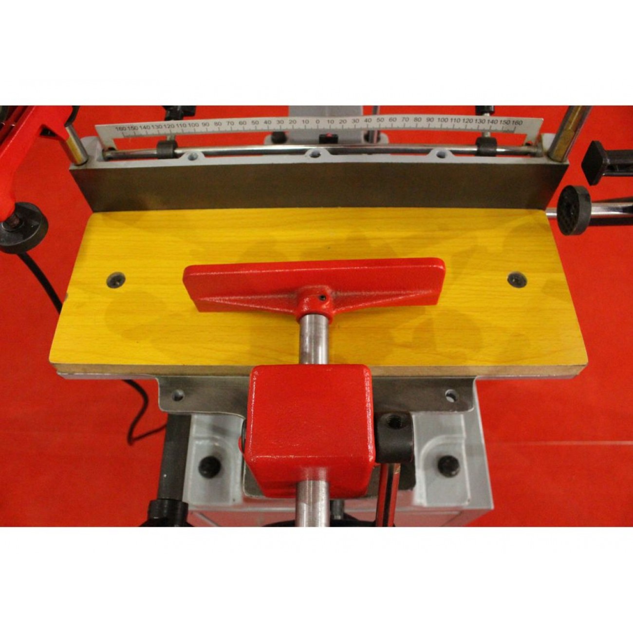 Для надійної фіксації заготовки у верстаті використовуються 2 ексцентрикові затискачі з можливістю швидкого регулювання. Для пазування з повторюваною точністю є регульовані упори. Регульовані напрямні “ластівчин хвіст” дозволяють з високою точністю вирізати прямокутні отвори. Координатний стіл налаштовується за допомогою 2 великих маховиків. Жорстка станина доповнена гумовими ніжками, що дає змогу мінімізувати вібрації. Цей довбальний верстат по дереву буде ефективним для столярних майстерень і дрібносерійних меблевих виробництв.