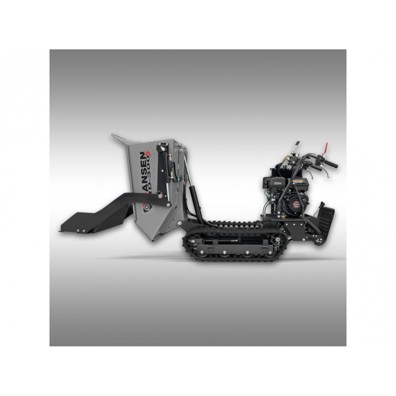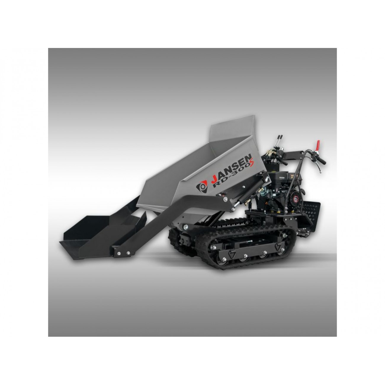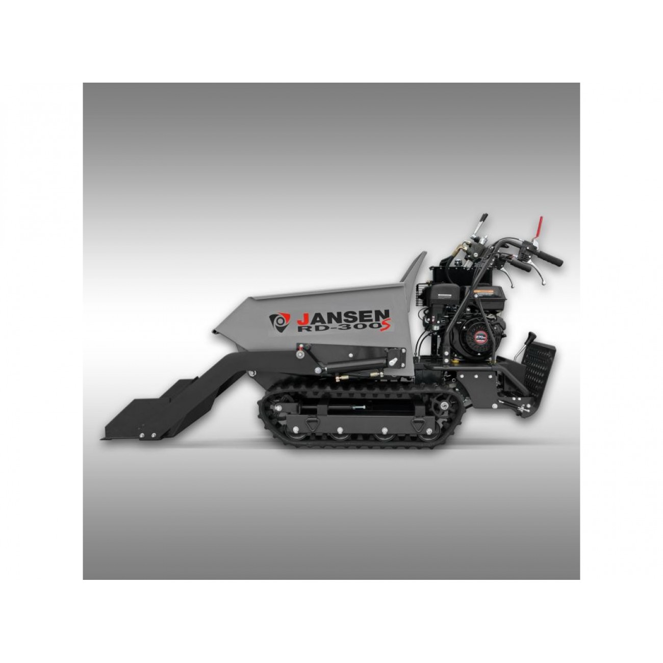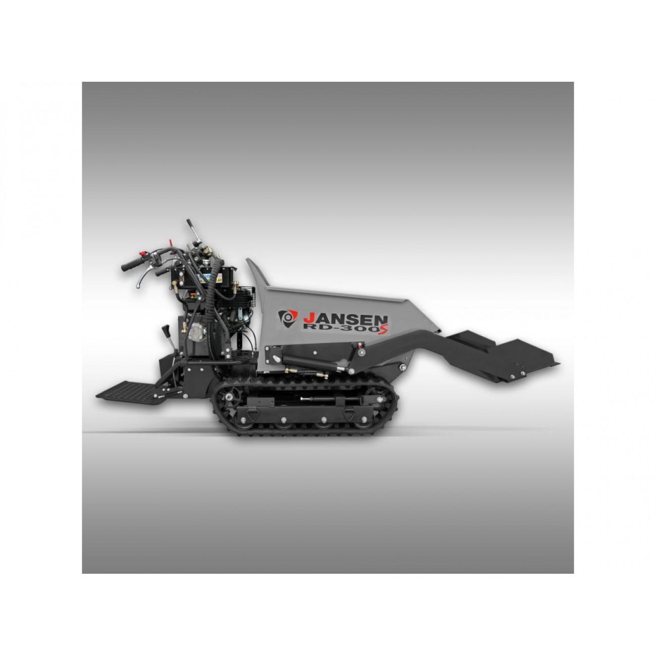 Гусеничний самоскид Jansen RD-300S - це компактне, мобільне та універсальне обладнання для переміщення вантажів у найрізноманітніших сферах. Вантажопідйомність 500 кг забезпечує продуктивну роботу, а гусеничний хід - відмінне зчеплення на нерівній місцевості, схилах і пагорбах. Невеликі габарити думпера дають змогу легко проїжджати у важкодоступних місцях.
