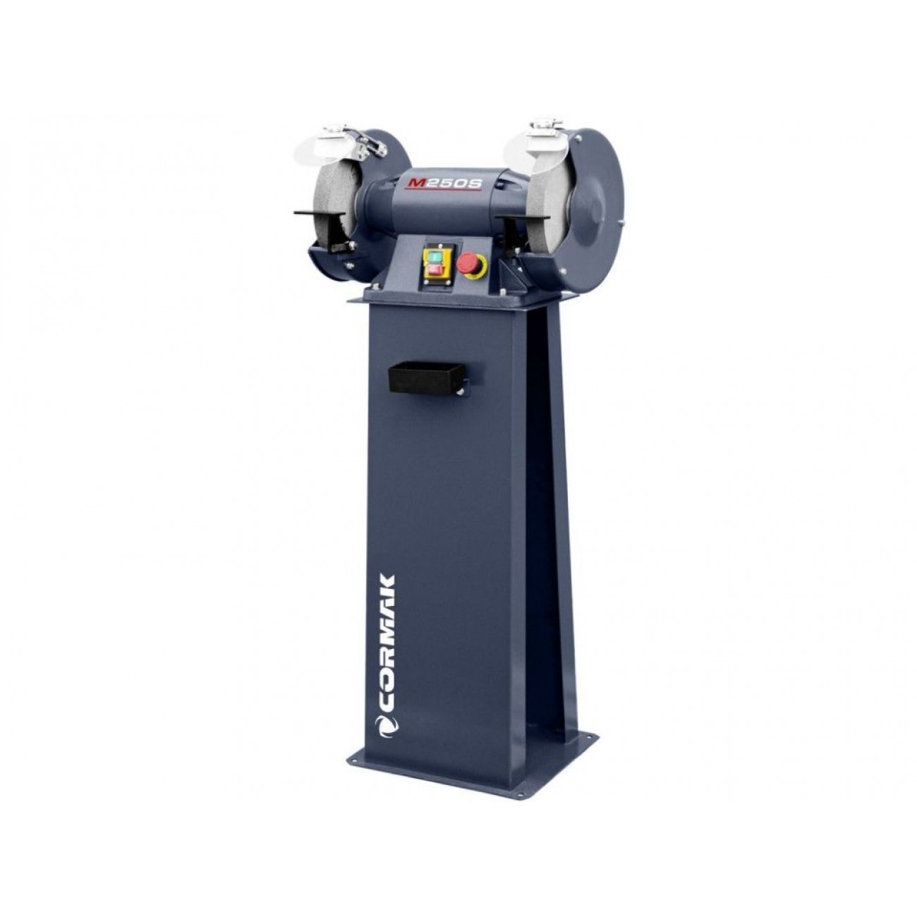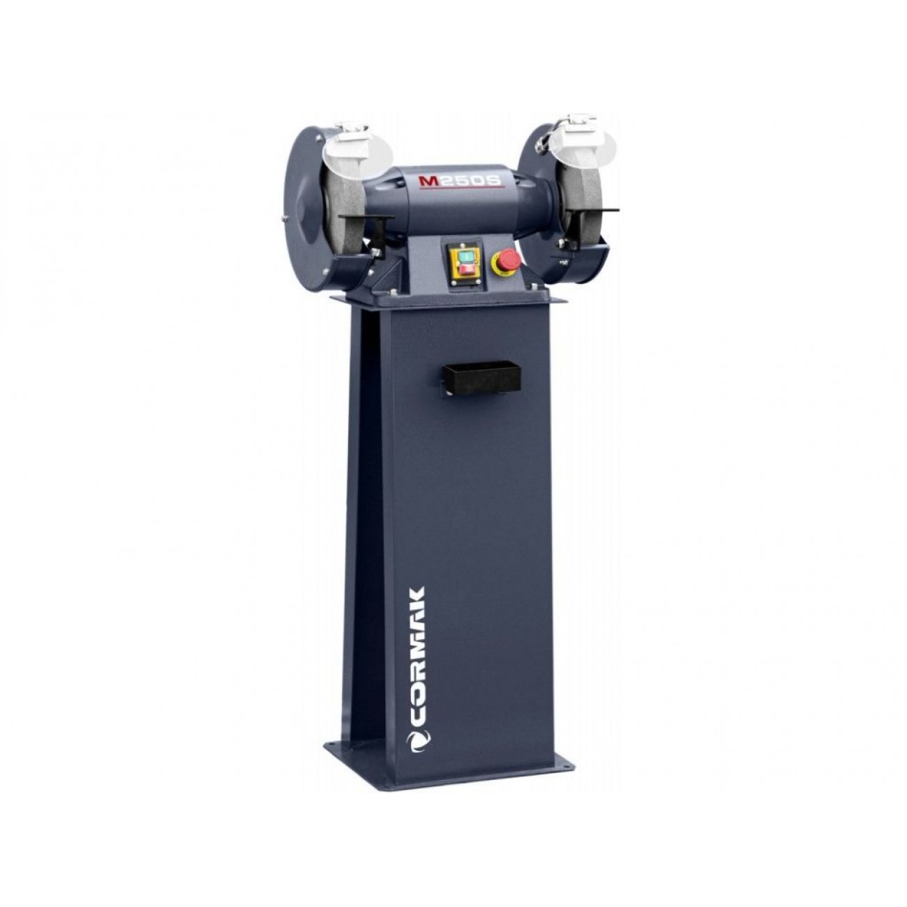 Дводискова шліфувальна машина CORMAK M250S з підставкою використовується для очищення, шліфування і полірування металевих заготовок. Завдяки оснащенню 2 дисками діаметром 250 мм, що мають абразивність К36 і К60, можна швидко змінювати вид обробки без потреби переналаштувань. Двигун потужністю 900 Вт (380 В) з високим крутним моментом розвиває швидкість 2960 об/хв.
