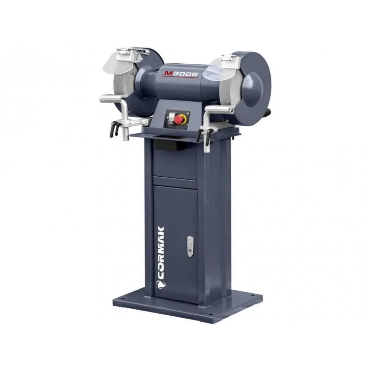 Промисловий настільний шліфувальний верстат з двома шліфувальними кругами діаметром 300 мм. Міцна та жорстка конструкція забезпечує тиху роботу без вібрацій.