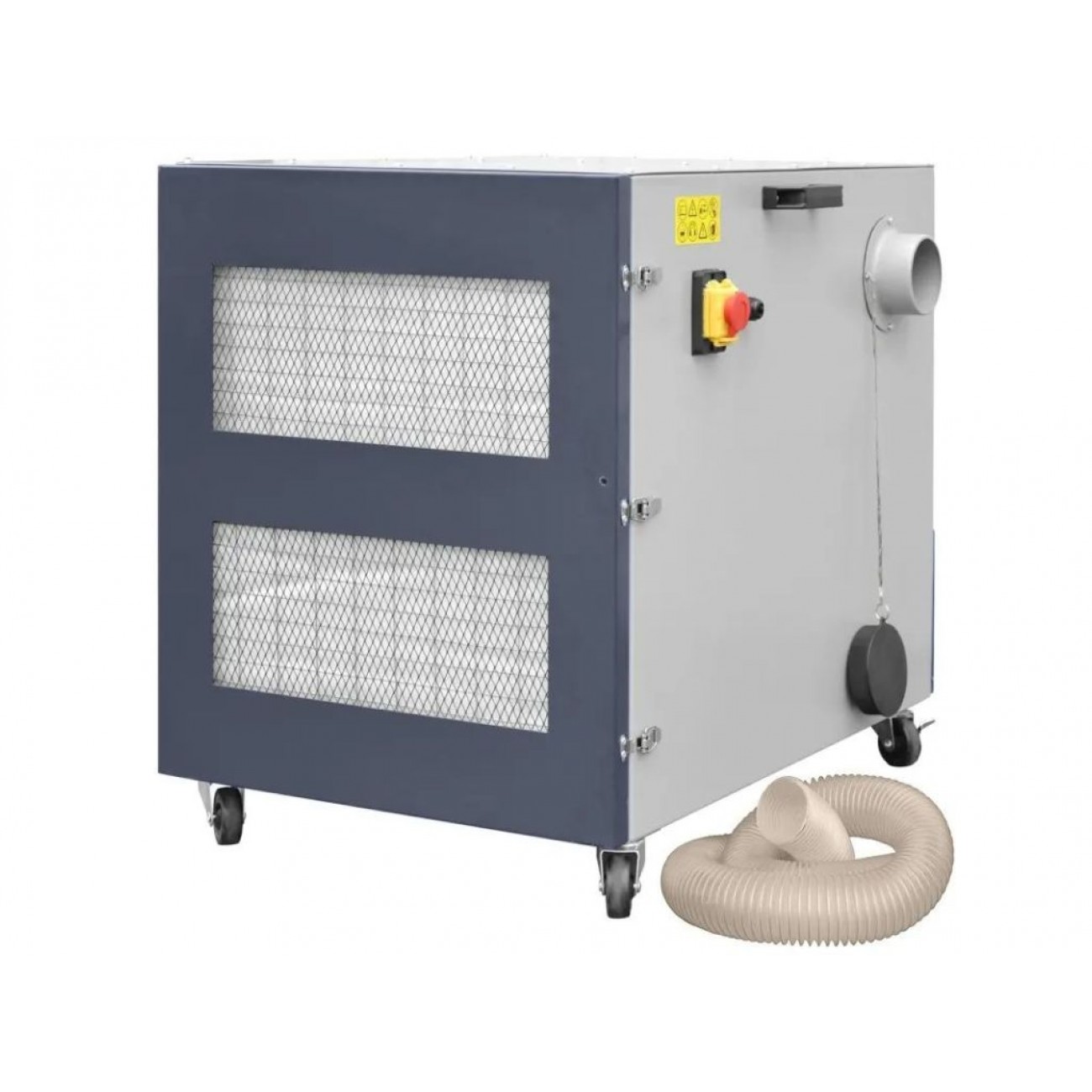 Обладнаний системою відсмоктування металевої стружки (алюмінієвої та сталевої) та очищення робочого простору. Бічний турбінний модуль робить його ідеальним для підключення до обладнання з інтенсивним утворенням стружки. Комплектується фільтром для пилу та знімним контейнером для збору відходів.