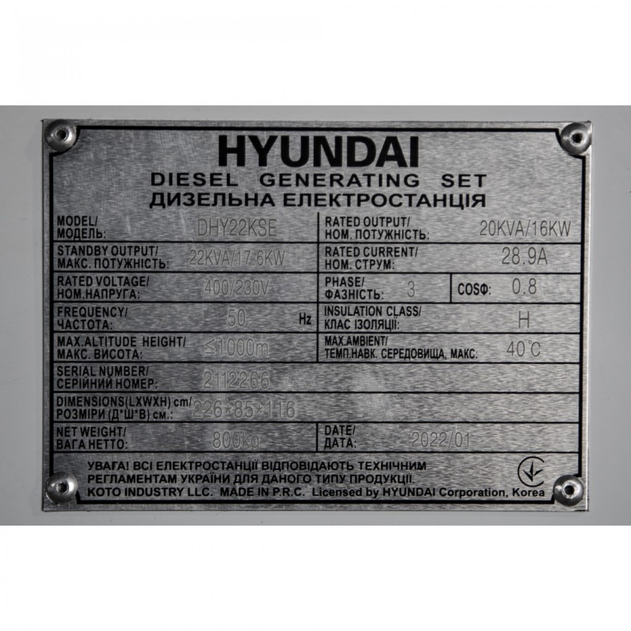 Відгуки про Електростанція дизельна Hyundai DHY 22KSE+ATS 60A