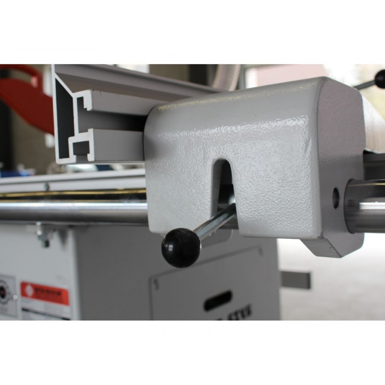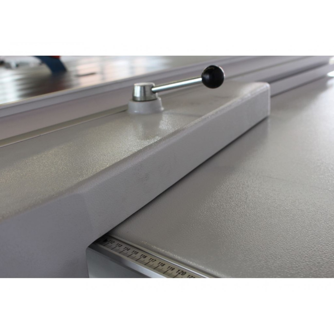 ДОДАТКОВА ЛІНІЙКА Для кутових різів в базову комплектацію верстата входить кутова лінійка, яка поставляється разом з ексцентриковим притиском. Ексцентриковий притиск встановлений поряд з поперечною лінійкою. |
