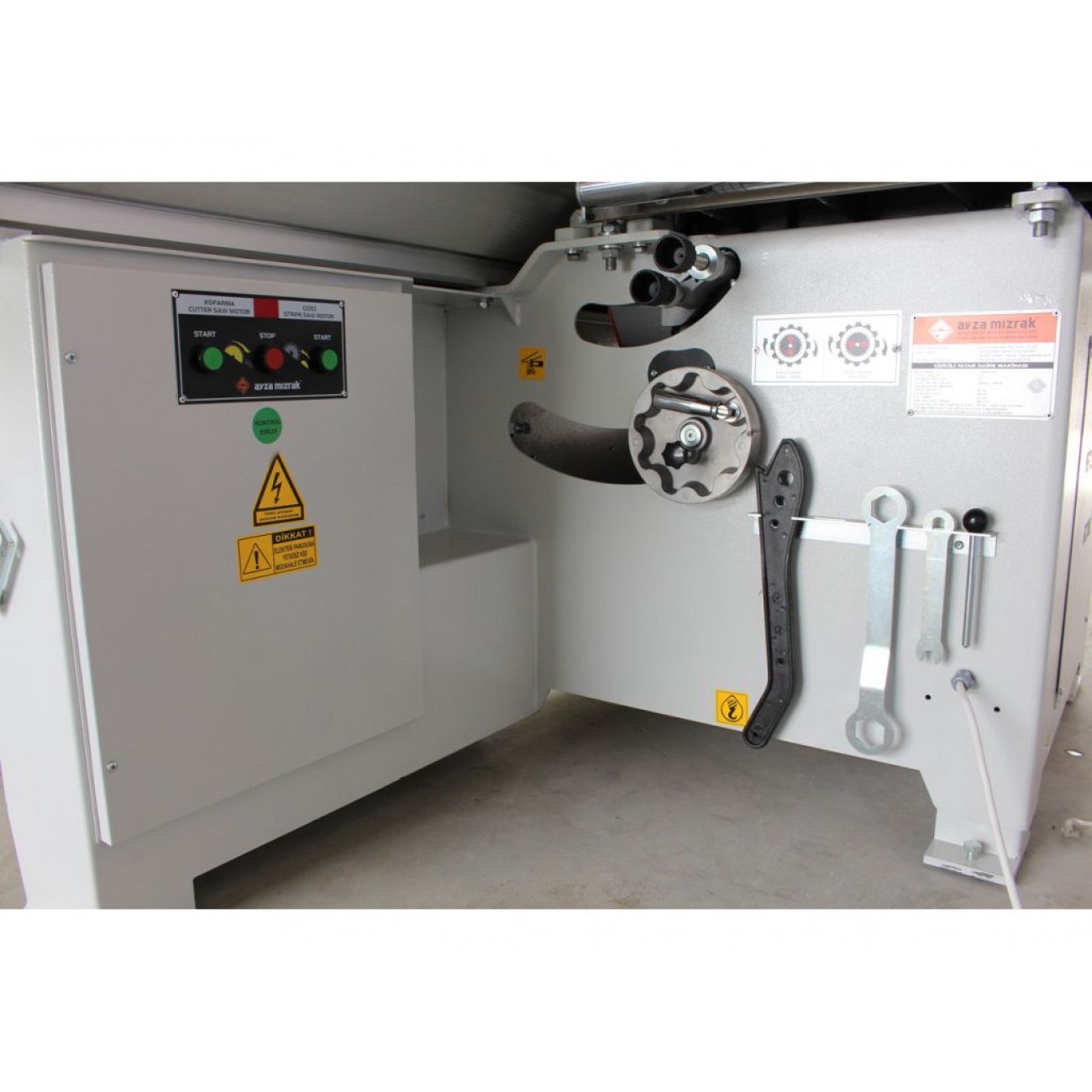 Форматно-розкрійний верстат Ayza Mizrak 3200 CLASSIC призначений для поздовжнього, поперечного і кутового розкрою плитних матеріалів (МДФ, ДВП, ДСП і клеєних щитів) облицювальних і ламінованих, з попереднім підрізом нижньої кромки для попередження відколів та розпилу масиву деревини з великою висотою пропилу.