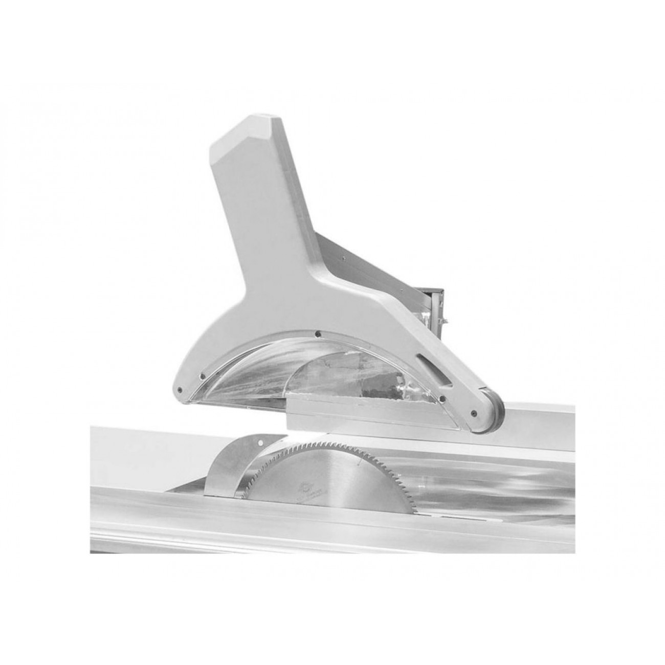 Великий захисний кожух пилки з роликами кочення по заготівлі легко регулюється по висоті, забезпечуючи якісне видалення пилу, а також гарантує повну безпеку оператора. Така конструкція дозволяє виключити з розкрою розклинювальний ніж без зняття захисного кожуха.