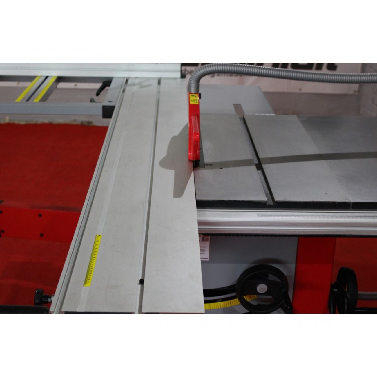 Завдяки потужному двигуну і високій швидкості обертання ріжучого диска здатний інтенсивно працювати тривалий час і якісно різати тверді та щільні матеріали. Великий, стійкий до навантажень робочий стіл має розширення спереду і праворуч, що дає змогу зручно працювати з важкими, габаритними заготовками. Алюмінієва каретка з касетним підшипником дає можливість робити точний і чистий різ довжиною до 2100 мм.