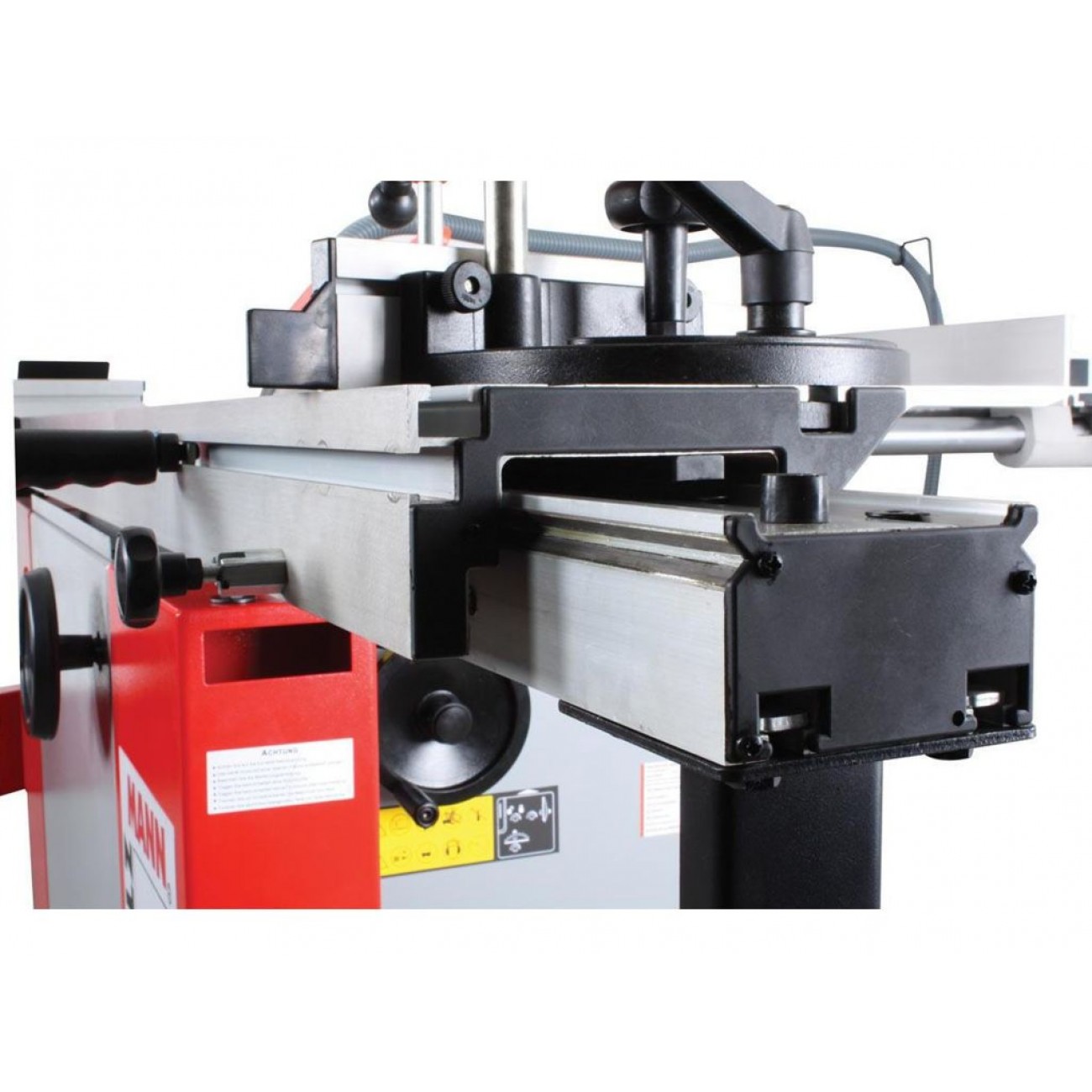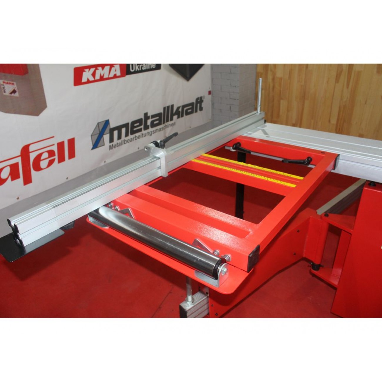 Високоточна алюмінієва каретка Завдяки високоточною алюмінієвої каретці роликового типу з довжиною ходу 3200 мм, досягається максимальна довжина різу до 3300 мм на каретці і без обмеження довжини різання від правої упорної лінійки з високою точністю і якістю різу. |