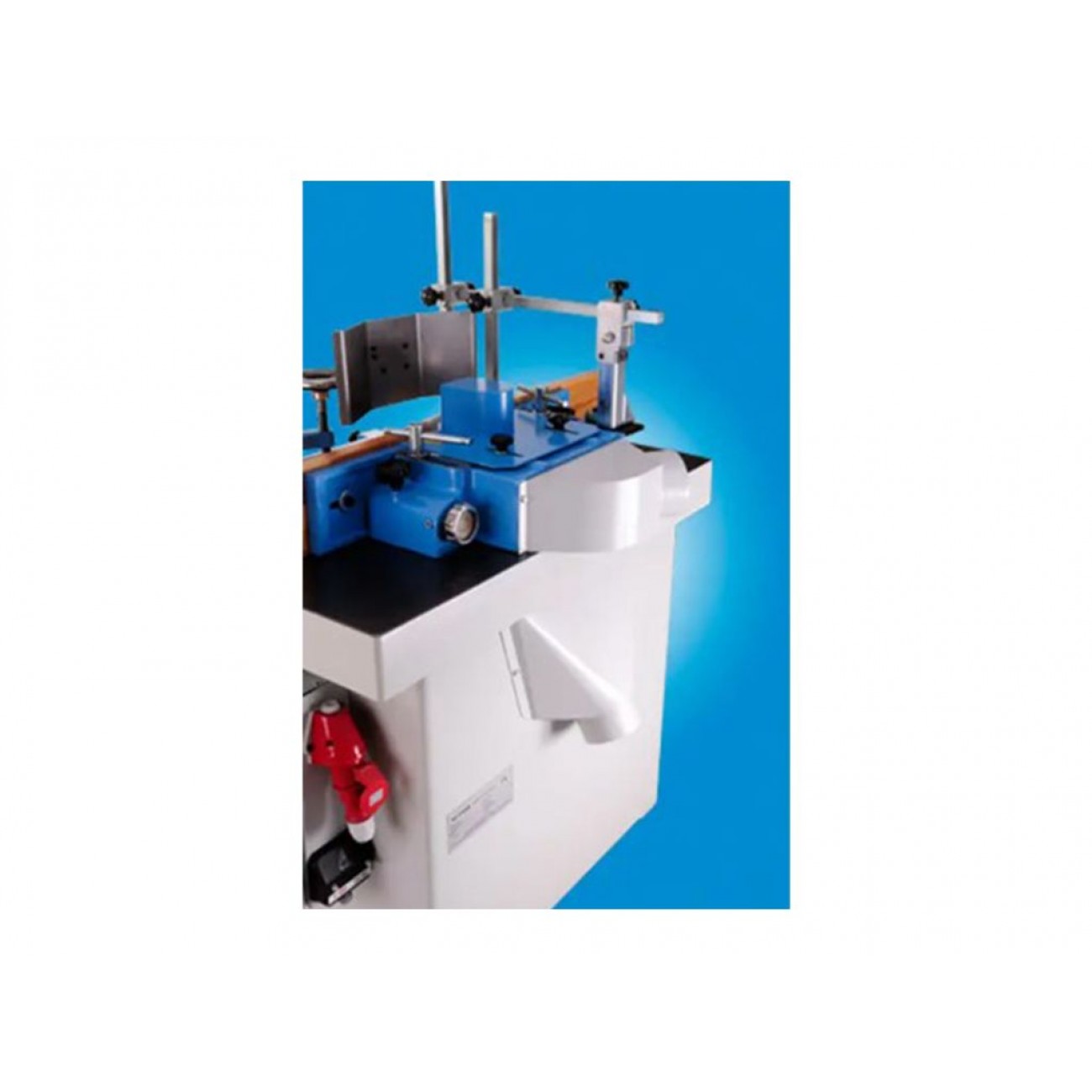 Верстат має масивний чавунний робочий стіл зі шліфованою поверхнею, непохитний фрезерний шпиндель, захисний кожух для профілювання, чотири швидкості обертання шпинделя, а також електромеханічну гальмівну систему.