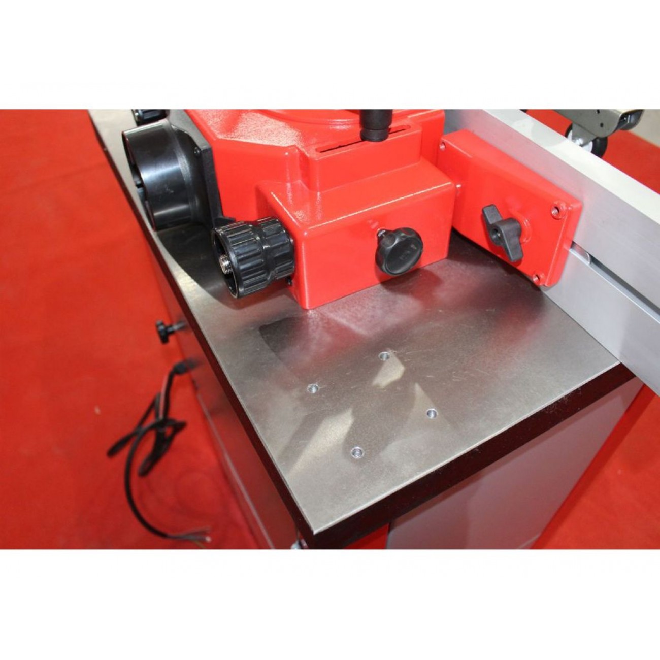Висота шпинделя регулюється вручну за допомогою маховика на бічній панелі. Масивний, стійкий до навантажень робочий стіл з сірого чавуну і додатковий алюмінієвий стіл з розширенням створюють простору робочу поверхню для зручної обробки великих і важких заготовок. Упор з системою утримання і точним регулюванням дозволяє досягти максимальної якості фрезерування. Завдяки відмінному функціоналу і надійності цей деревообробний фрезерний верстат буде відмінним вибором для професійних майстерень.
