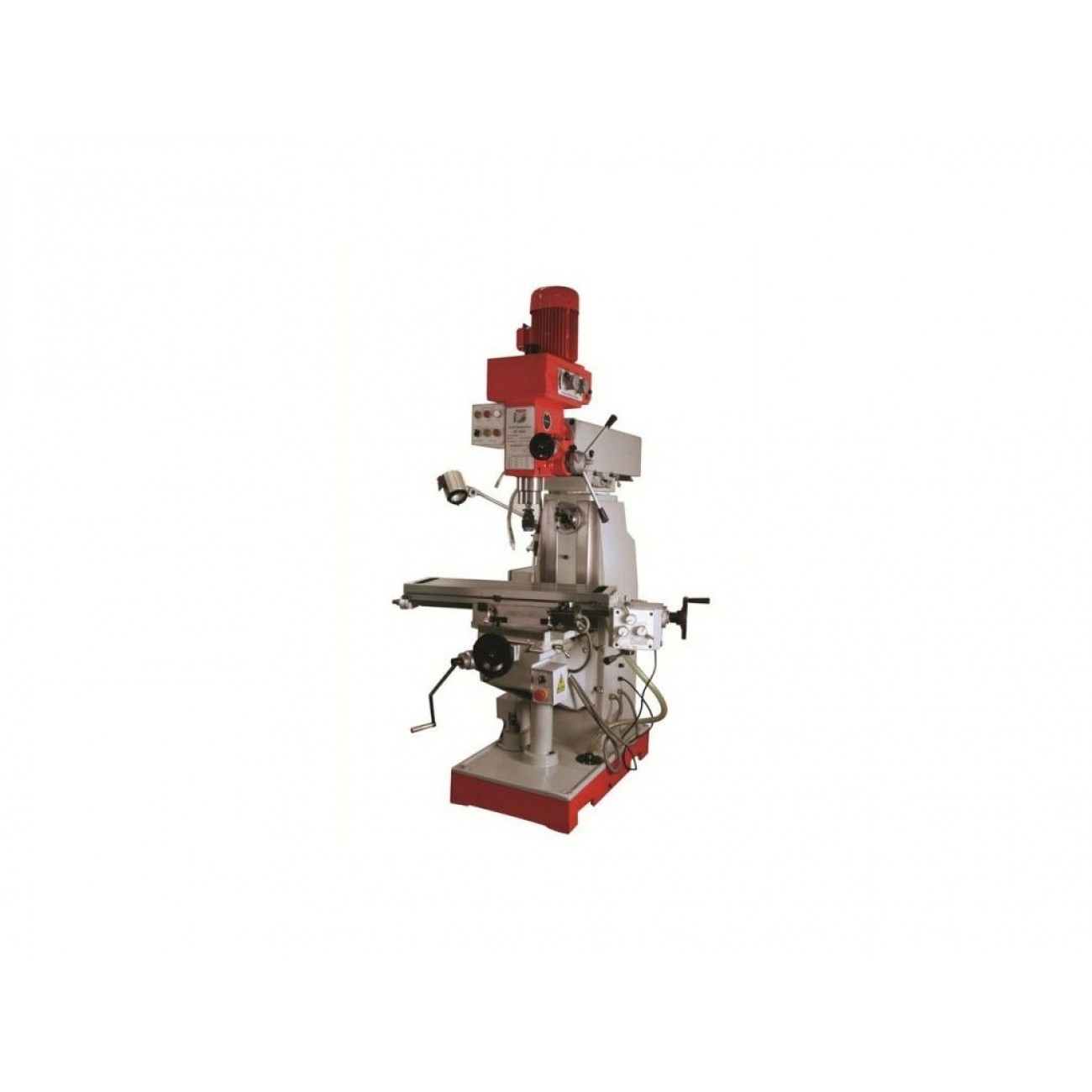Універсальний вертикальний фрезерний верстат призначений для фрезерування поверхонь, нарізання різьби (правим і лівим ходом), свердління отворів в металі глибиною до 125 мм і діаметром до 50 мм. Це важка лита виброустойчивая конструкція з поворотною фрезерною головою на 90 градусів в обидві сторони. Лінійки можна регулювати по всіх осях.