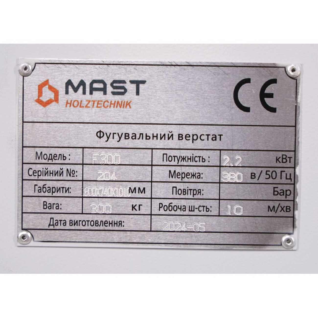 Основні характеристики Фугувальний верстат MAST Holztechnik F300