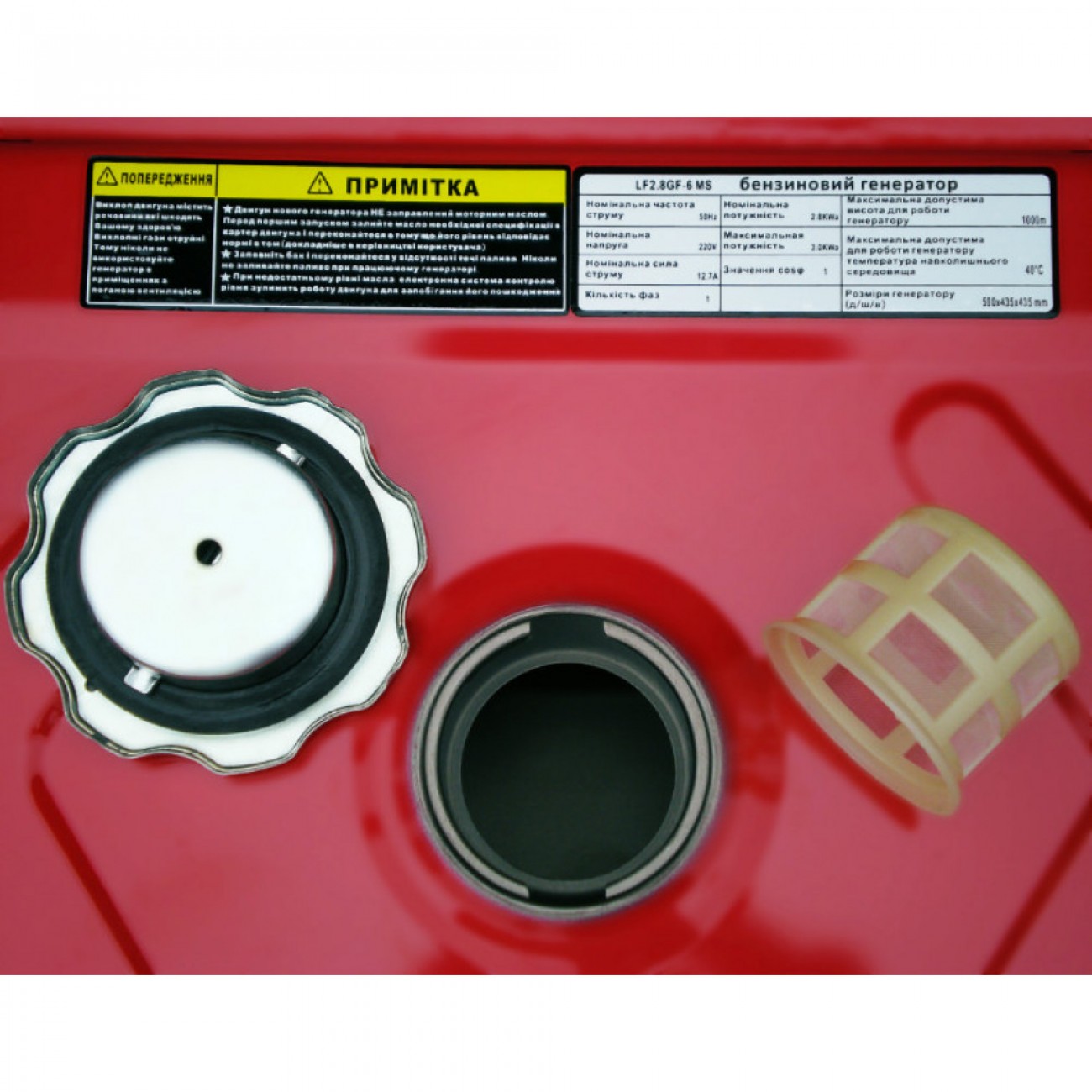 В качестве «сердца» у LF2.8GF-6 выступает небольшой четырехтактный одноцилиндровый двигатель с двумя клапанами. Он имеет объем в 212 кубических сантиметров и систему принудительного охлаждения. Мощность двигателя – 7 лошадиных сил, что позволяет ему выдавать отличные результаты и стабильно обеспечивать электроэнергией всех потребителей без просадки напряжения. Генератор однофазный, он выдает стандартное напряжение в 220 В при частоте в 50 Гц.