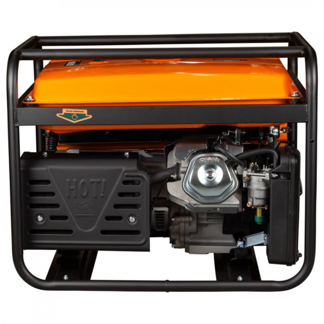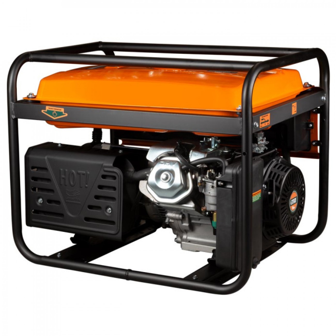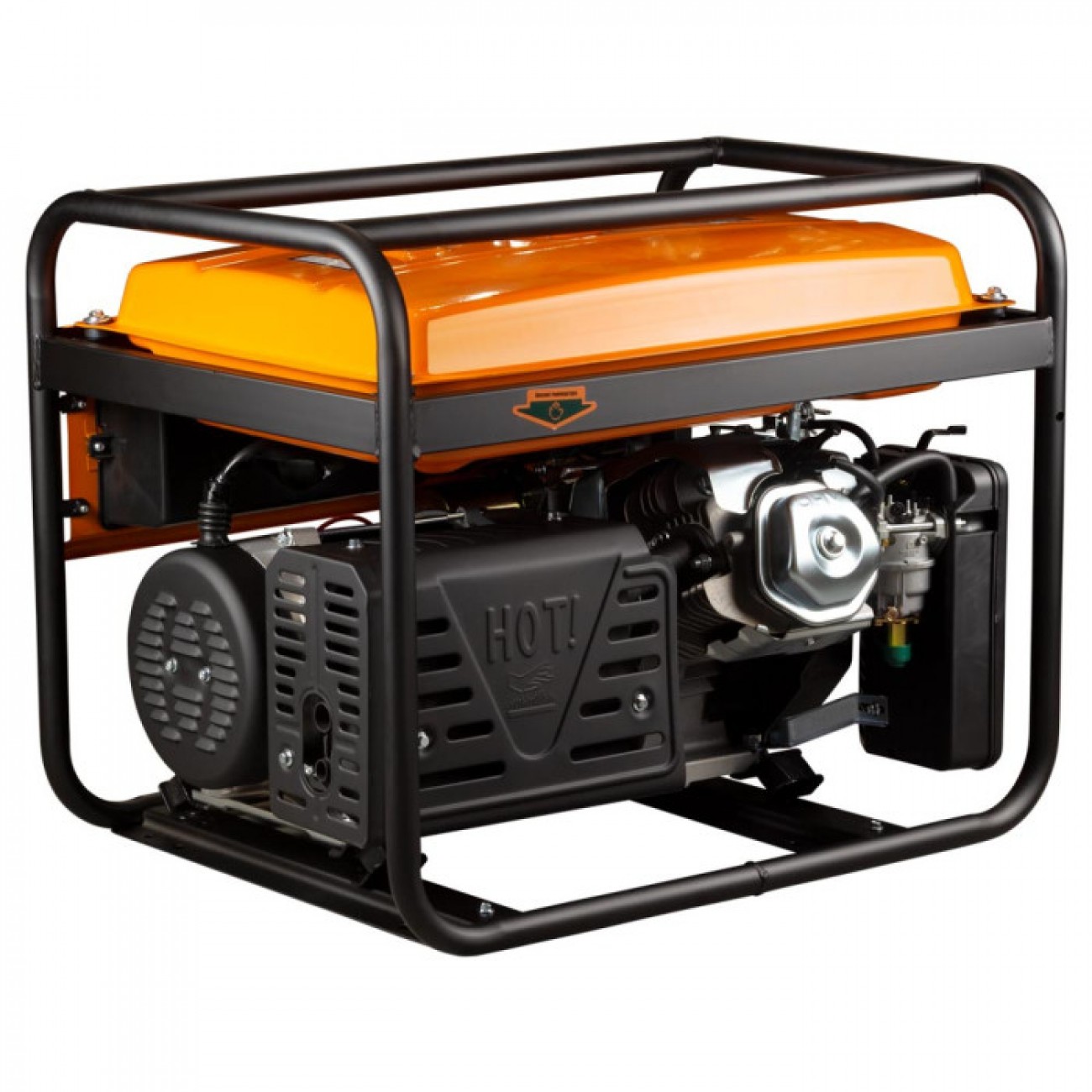 Сучасна компактна електростанція, яка може стати як альтернативним, так і постійним джерелом струму в невеликому котеджі або офісі. Генератор використовується для живлення електроінструментів, обладнання та побутової техніки. Серцем генератора є бензиновий чотиритактний двигун внутрішнього згоряння. Залежно від типу і виду обладнання, що підключається, при повній заправці генератор може пропрацювати близько 12 годин. Двигун генератора запускається за допомогою ручної системи запуску - пускового пристрою зі шнуром. Для зручності користування всі основні елементи управління і регулювання роботи знаходяться на передній панелі електростанції. Це вольтметр, розетки змінного струму, запобіжники, клеми для підключення споживачів постійного струму 12 Вольт, клема заземлення. Там же розташувався цифровий дисплей, що відображає робочу напругу, частоту і кількість мотогодин. Під час роботи генератора автоматичний регулятор AVR на виході забезпечує стійку і безперебійну подачу напруги в заданих межах. Виробник завбачливо встановив спеціальні системи захисту, які дозволяють зробити роботу станції безпечною і довговічною. Захист від перевантаження запобігає надмірному підвищенню навантаження на генератор. У свою чергу система блокування запуску двигуна відключить запалювання при роботі з недостатнім рівнем масла або при аварійному його витіканні з картера.Характеристики:Модель двигуна: 190F Мідна обмотка Вбудований регулятор вихідної напруги (AVR) Обладнаний системою захисту від недостатнього рівня масла «OIL ALERT» Верхнє розташування клапанів (OHV)Антивібраційна система Місткий бак Портативна конструкція