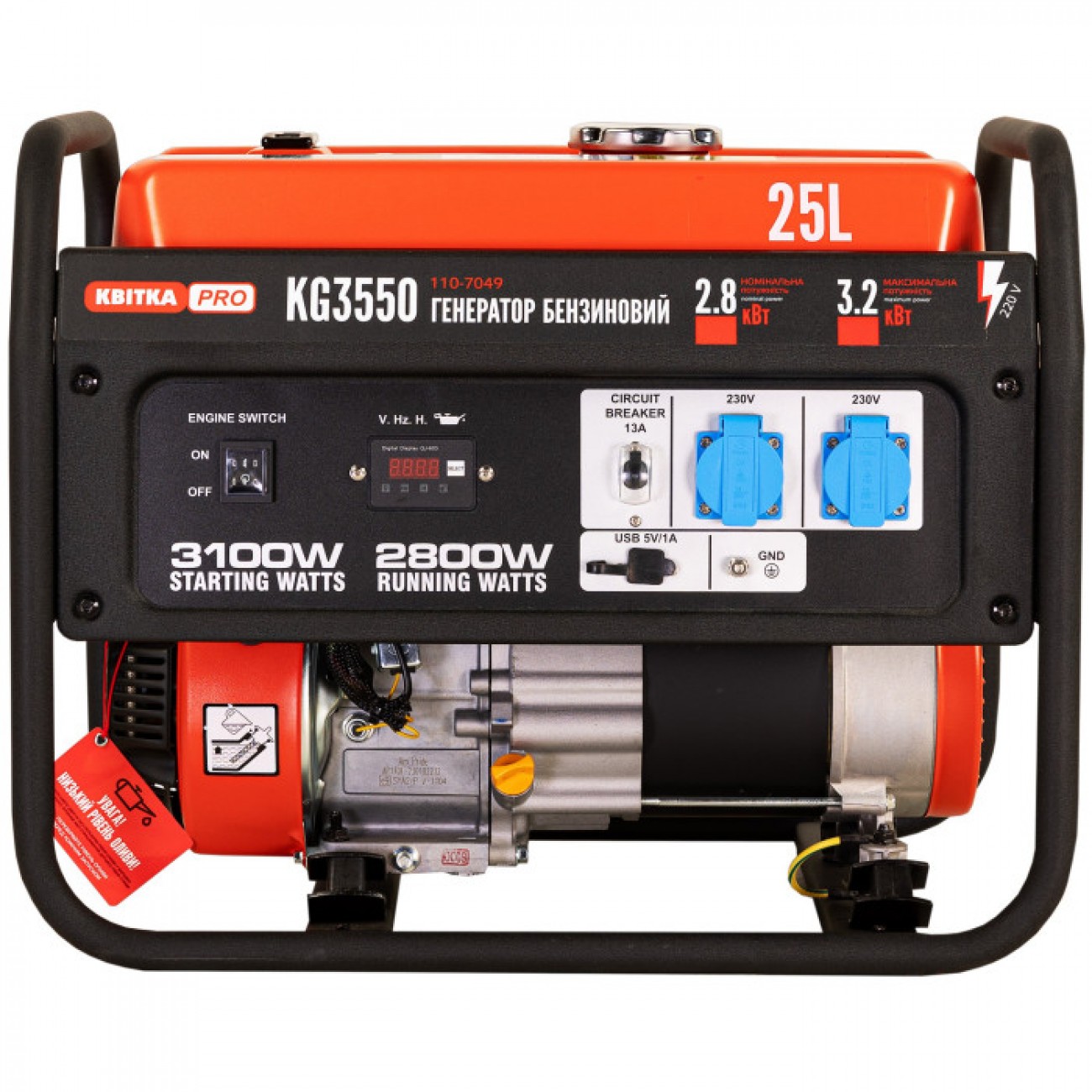 Опис Генератор бензиновий 2,8/3,2 КВт KG3550 ручний пуск б/к, КВІТКА PRO