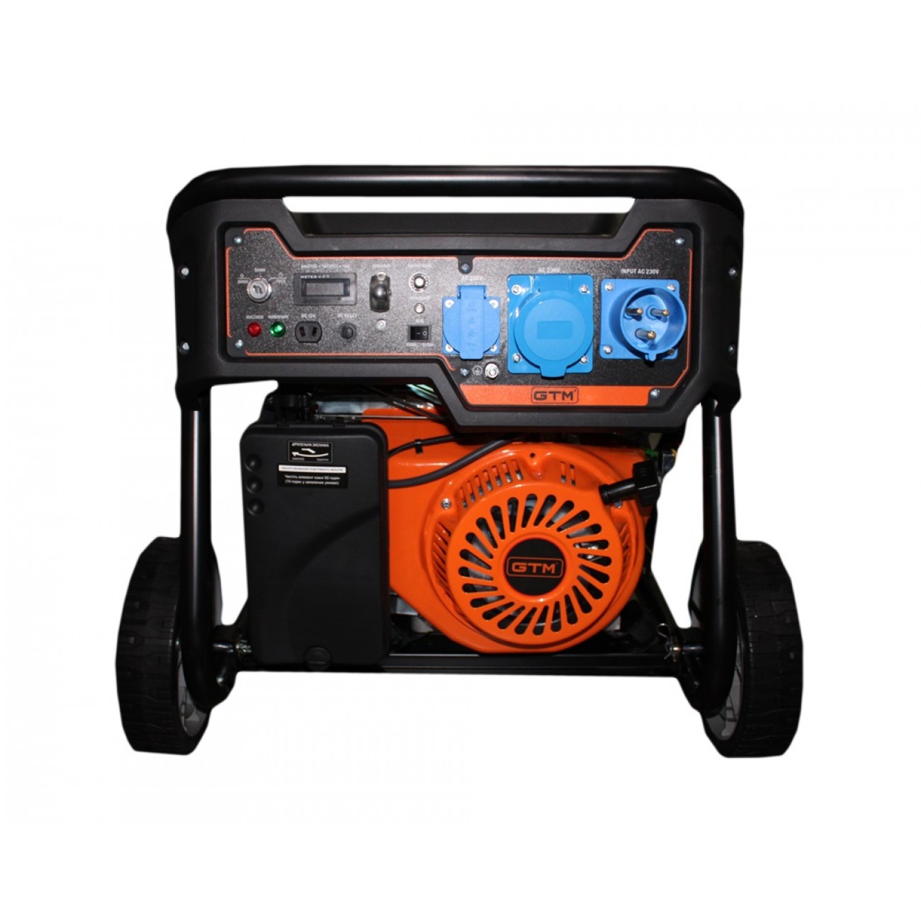 GTM DK5500-L– бензиновий електрогенератор для забезпечення живлення обладнання у разі відсутності електроенергії. Оснащений 4-х тактним двигуном DK190F, який відрізняється економічністю, низьким рівнем викидів та шуму. Максимальна потужність на виході генератора становить 5,5 кВт. Ідеальний варіант для використання у побутових умовах, на дачі або у невеликих магазинах. Під час роботи повного бака палива об'ємом 25 л вистачить до 9,5 години при 100% навантаженні. Вбудований АВР дозволяє налаштувати автоматичне увімкнення генератора при відключенні мережі.