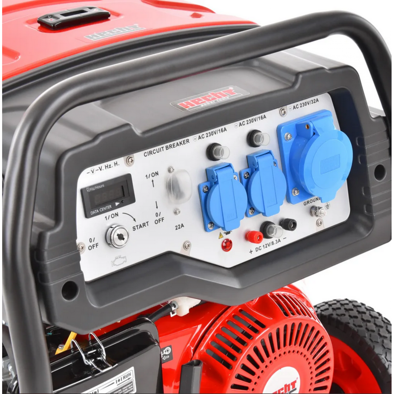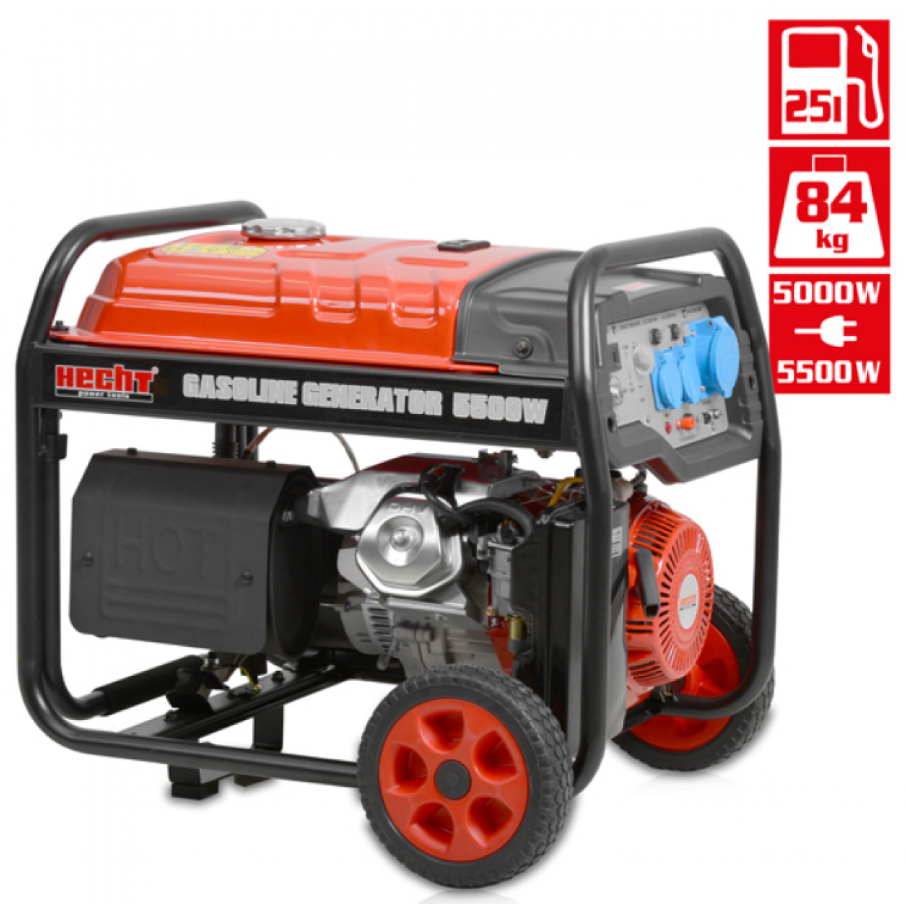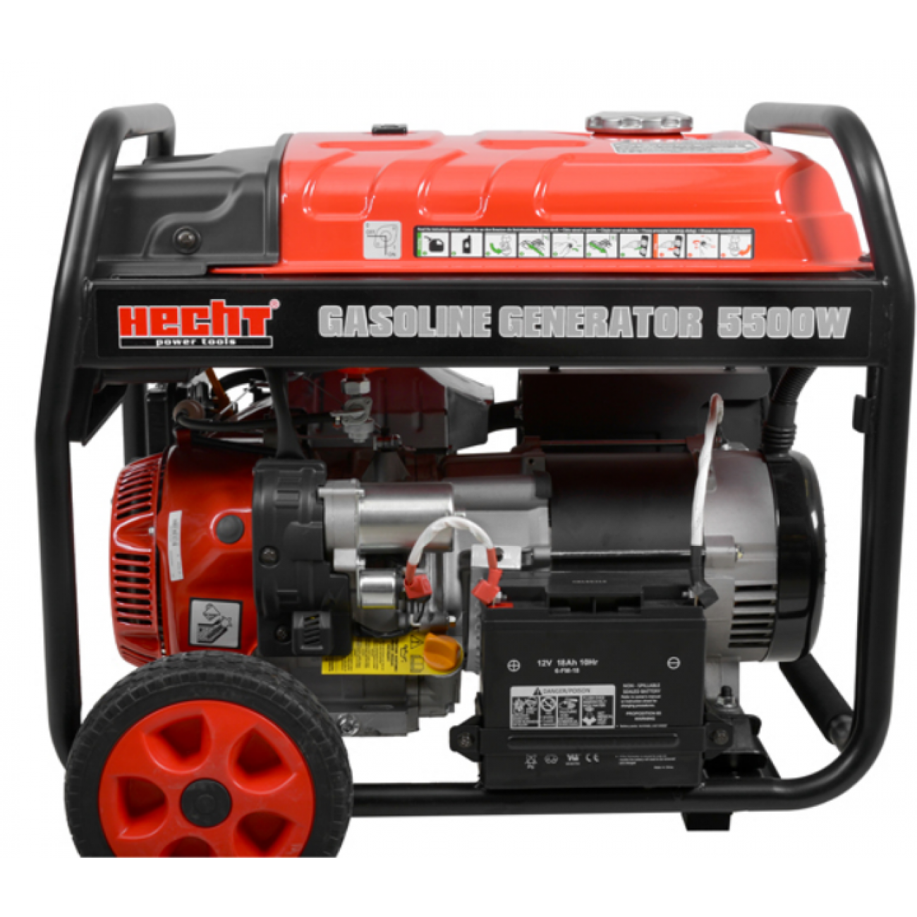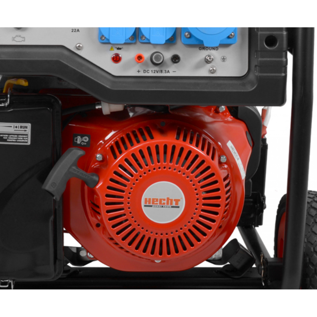 Потужний 4-тактний двигун 13 к.с. і об'ємом 389 см³ Оснащений електричним стартером, тому двигун запускається поворотом ключа, як автомобіль. У разі розрядки акумулятора, існує також можливість ручного пуску за допомогою стартовою каната. Генератор має постійну потужність від 5000 Вт, але може бути тимчасово завантажений до максимальної потужності 5500 Вт. HECHT GG6500 - безшумний, стабільний і ефективний генератор