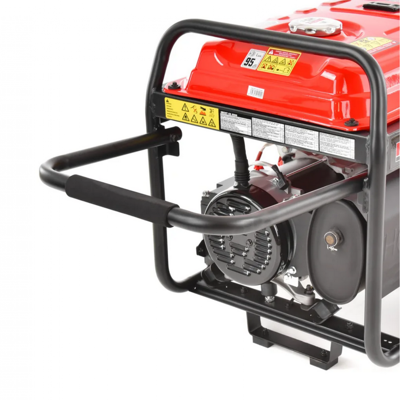Оснащений колесами, завдяки яким полегшується транспортування і переміщення генератора Вага пристрою 84 кг. Дана модель оснащена AVR (автоматичним регулюванням напруги), що запобігає коливання напруги при зміні навантаження. Паливний бак ємністю 25 літрів дозволяє безперервно працювати максимум 8 годин. Генератор закріплений в рамі сталевих труб і оснащений рукояткою нахилу.