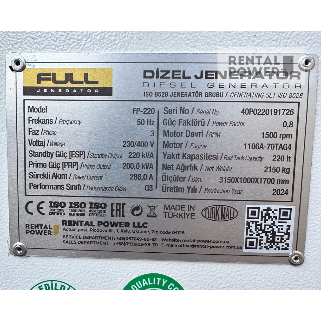 Модель дизельного генератора Full FP 220 (160 кВт) являє собою електростанцію, яка може стати відмінним рішенням у разі аварійного або планового відключення електроенергії у великих масштабах, наприклад, в офісах, магазинах, ресторанах, СТО. Також це обладнання можна купити для робіт на будівельних і ремонтних майданчиках, які знаходяться далеко від основної мережі.