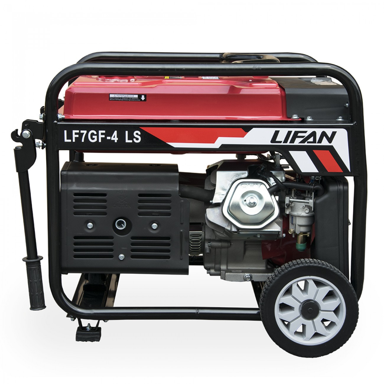 Вес устройства 85 килограмм без учета топлива и аккумуляторной батареи. LF7GF-4LS имеет прочную раму, два колеса и две ручки, облегчающие транспортировку генератора. В комплект входит специальный съемный фильтр, используемый для очистки выхлопных газов. При необходимости его можно самостоятельно прочистить или заменить. Также имеет две вилки для подключения потребителей (220 вольт, 16 ампер и 32А) и клеммы для зарядки автомобильного аккумулятора 12 вольт.