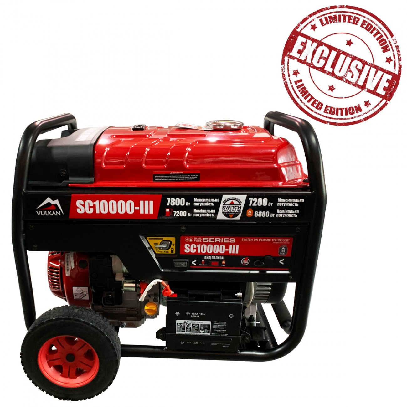 Генератор Vulkan SC10000-III має двигун, здатний працювати в двох режимах. У першому режимі електростанція живиться від бензину з октановим число 92 або 95. Завдяки цьому, максимальна вихідна потужність досягає 7,8 кВт. Другий режим є більш економічним і екологічно чистим ,оскільки SC10000-III починає працювати від зрідженої суміші газів LPG (пропан-бутану). Потужність на виході в такому випадку становить до 7,2 кВт. Для зручності, зміна режиму роботи здійснюється одним великим перемикачем, який винесений на корпус генератора.