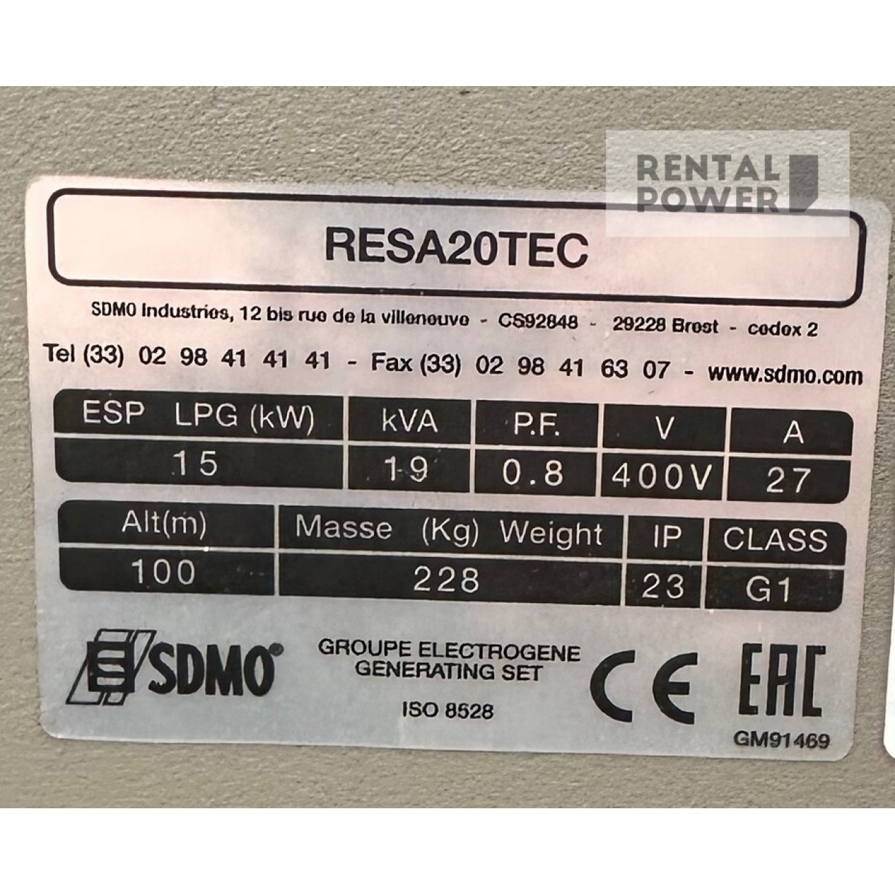 Генератор SDMO RESA 20 TEC – має витрату палива в 5.4 м3/год (природний) / 4.5 кг/год (пропан) при 80 відсотковому навантаженні. Важливим аспектом у генераторній установці від компанії SDMO є постачання якісної та безперебійної електроенергії. Станція видає - 3 фази (380 Вт) і забезпечує потужність 17 (18) кВт. Рівень шуму в децибелах на відстані 7 метрів становить 69, вага агрегату 234 кг. Газовий надійний двигун від компанії Kohler, тип двигуна CH 740. При роботі газової електростанції встановлені спеціальні системи безпеки від витоку газу та його загоряння. Безпека та якість – підтверджено сертифікатом ISO.