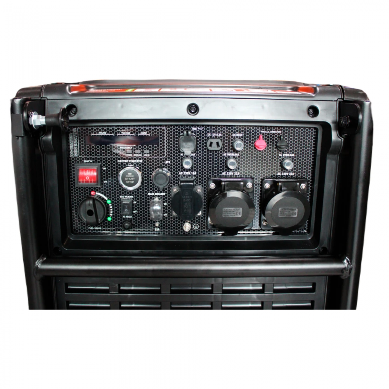 Інверторний бензиновий генератор GTM DK9000i –оснащений надійним, стійким до роботи в екстремальних умовах 4-тактним двигуном марки DK460F з максимальною потужністю на виході до 8 кВт. Ідеальний варіант, щоб зробити ваш відпочинок, похід чи риболовлю ще яскравішим та комфортнішим. Під час роботи повного бака палива об'ємом 26 л вистачить до 10.5 год при 50% навантаженні. Інверторна технологія забезпечує надійне живлення для чутливих електричних приладів та комп'ютерів. Захист при низькому рівні мастила. Зручна захищена панель. Термічний автоматичний вимикач захищає генератор від перевантаження чи перегріву.Індикатор сигналу тривоги значно спрощує контроль при використанні.
