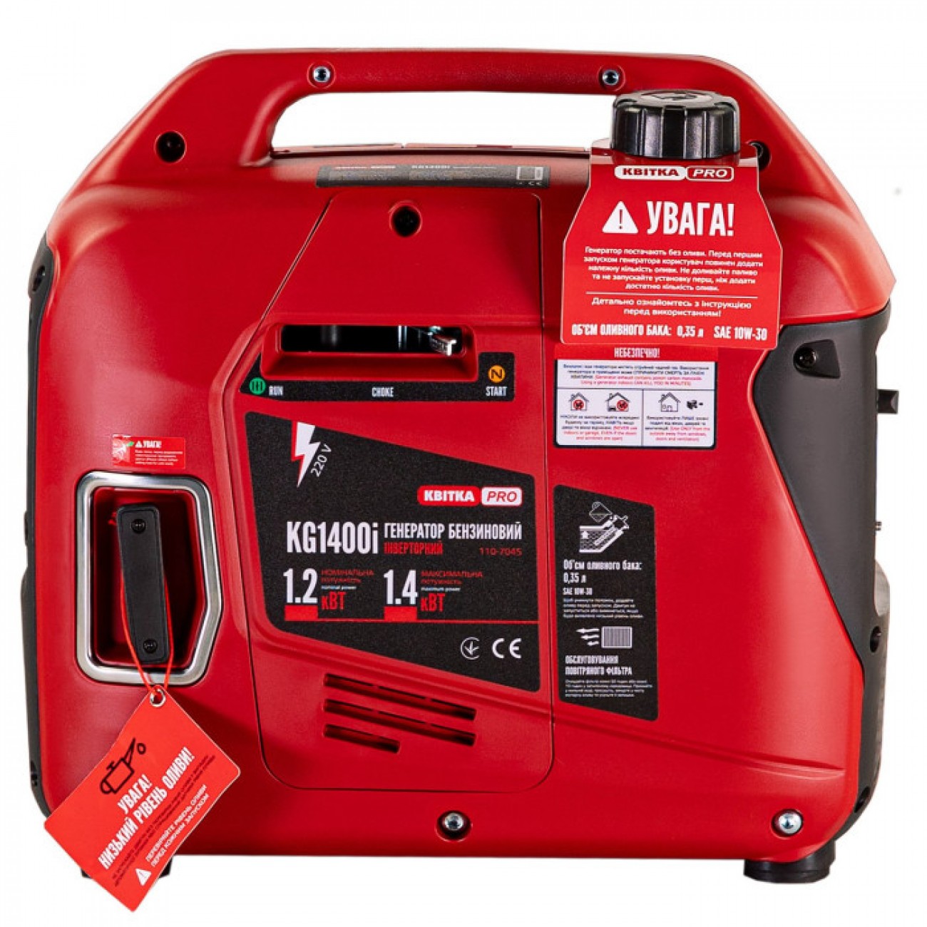 КВІТКА PRO KG1400i —це не просто рядовий інверторний генератор,а надійний енергетичний компаньйон, здатний забезпечити стабільне електроживлення в найрізноманітніших умовах.Генератор бензиновий інверторний КВІТКА PRO KG1400i: переваги:Тиха робота, як шепіт вітру. Завдяки інноваційній інверторній технології, бензогенератор інверторний працює практично безшумно, що дає змогу використовувати його в житлових приміщеннях, на кемпінгах або під час відпочинку на природі, не порушуючи тишу.Чиста синусоїдальна хвиля — запорука довговічності техніки. Генератор бензиновий інверторний КВІТКА PRO KG1400i виробляє електрику з такою ж стабільністю, як і у звичайній розетці. Це дає змогу безпечно під'єднувати чутливу електроніку, таку як комп'ютери, медичне обладнання та аудіосистеми.Компактність і легкість — свобода пересування. Незважаючи на свої можливості, бензогенератор інверторний вирізняється компактними розмірами.Бензогенератор інверторний: особливості:Економічність у витраті палива —більше енергії, менше витрат. Оптимізований двигун і система управління дають змогу знизити витрату і збільшують час автономної роботи.Тривалий термін служби —надійність, перевірена часом. Високоякісні матеріали і збірка гарантують тривалий термін служби генератора без необхідності частого ремонту.Екологічність —турбота про довкілля. Низький рівень викидів шкідливих речовин робить генератор бензиновий інверторний КВІТКА PRO KG1400i безпечним для довкілля.Комплектація оливою —готовність до роботи одразу з коробки. У комплект поставки входить олива для двигуна, що дає змогу одразу ж запустити генератор після купівлі.