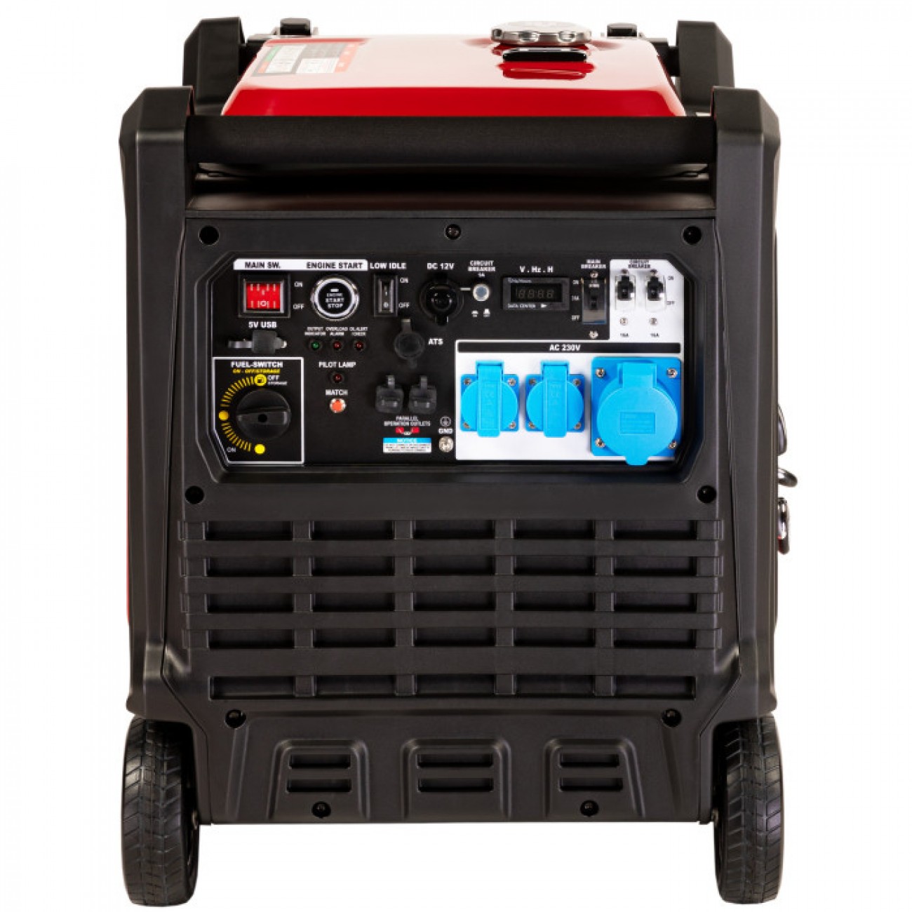 KG8000iESAC — потужний український інверторний електрогенератор. Купити інверторний бензогенератор у виробника вам пропонує Профіцентр КВІТКА.Генератор бензиновий інверторний КВІТКА PRO переваги:Ця модель має можливість підключення блокуATS, що запускає генератор автоматично.Бензогенератор інвертор KG8000iESAC - це потужна і добре захищена установка.Закрита конструкціякорпусу забезпечує стійкість до погодних умов та потенційних механічних впливів.Синхронний альтернаторз обмоткою з міді, який вбудований в генератор бензиновий інверторний КВІТКА PRO відповідає за подачу чистого струму без критичних коливань мережі.При повному заправленні паливного бака бензогенератор інвертор KG8000iESAC здатний на11 годинбезперервної роботи.Генератор бензиновий інверторний КВІТКА PRO маєвисоку мобільність. Для зручності переміщення передбачена розкладна ручка та коліщатка.Бензиновий 4-тактний двигун, вмонтований в бензогенератор інвертор KG8000iESAC здійснює до3 тисячобертів за хвилину.Бензогенератор інвертор KG8000iESAC особливості:Модель оснащенасистемою індикації, що сповіщає про низький рівень масла та потенційні навантаження в роботі.Генератор бензиновий інверторний КВІТКА PRO відноситься до класичниходнофазнихелектрогенераторів.Установка має габаритні розміри820х640х780 мм.Максимальна потужність установки дорівнює показнику8 кВт.*Колір або відтінок на фотографії можуть відрізнятися від реального. Параметри та комплектація можуть бути змінені виробником товару без попередження. Магазин не несе відповідальності за зміни, які вніс виробник