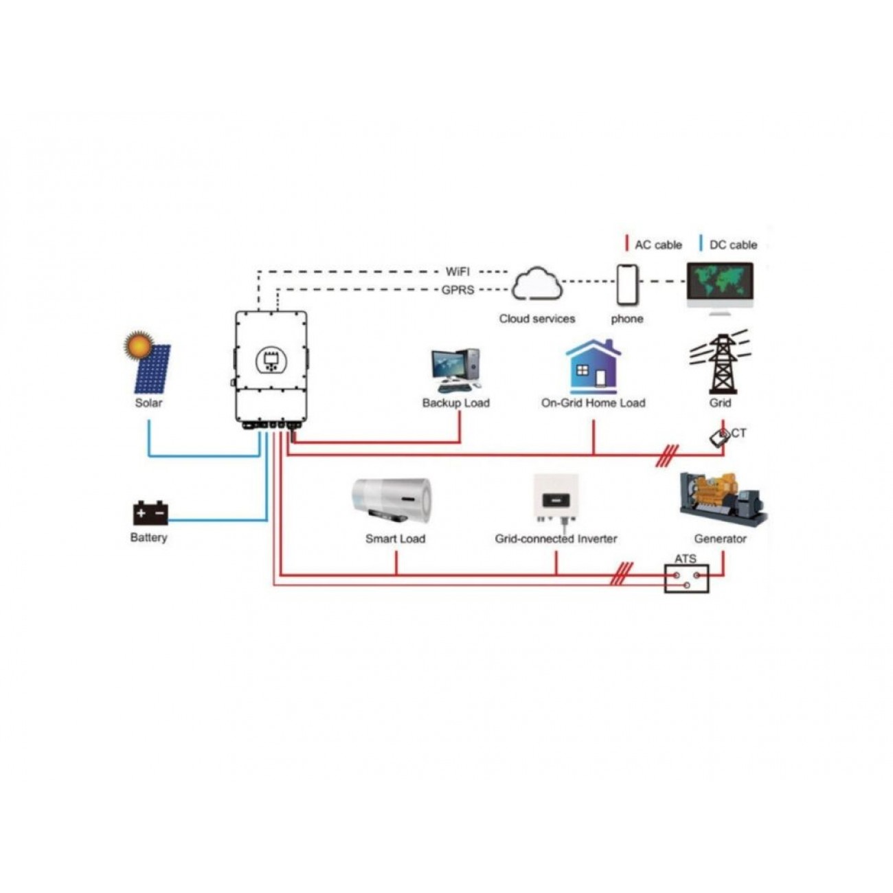 Основна унікальна особливість інвертора DEYE V-TAC полягає в його співвідношенні DC/AC, яке становить 1,3. Він підтримує струм зарядки і розрядки до 240А і має можливість працювати в острівному режимі. Інвертор може налаштовувати кількість електроенергії, що подається в мережу, від 0 до максимальної потужності інвертора. У автономному режимі пікова миттєва потужність вдвічі перевищує потужність інвертора (протягом 10 секунд).