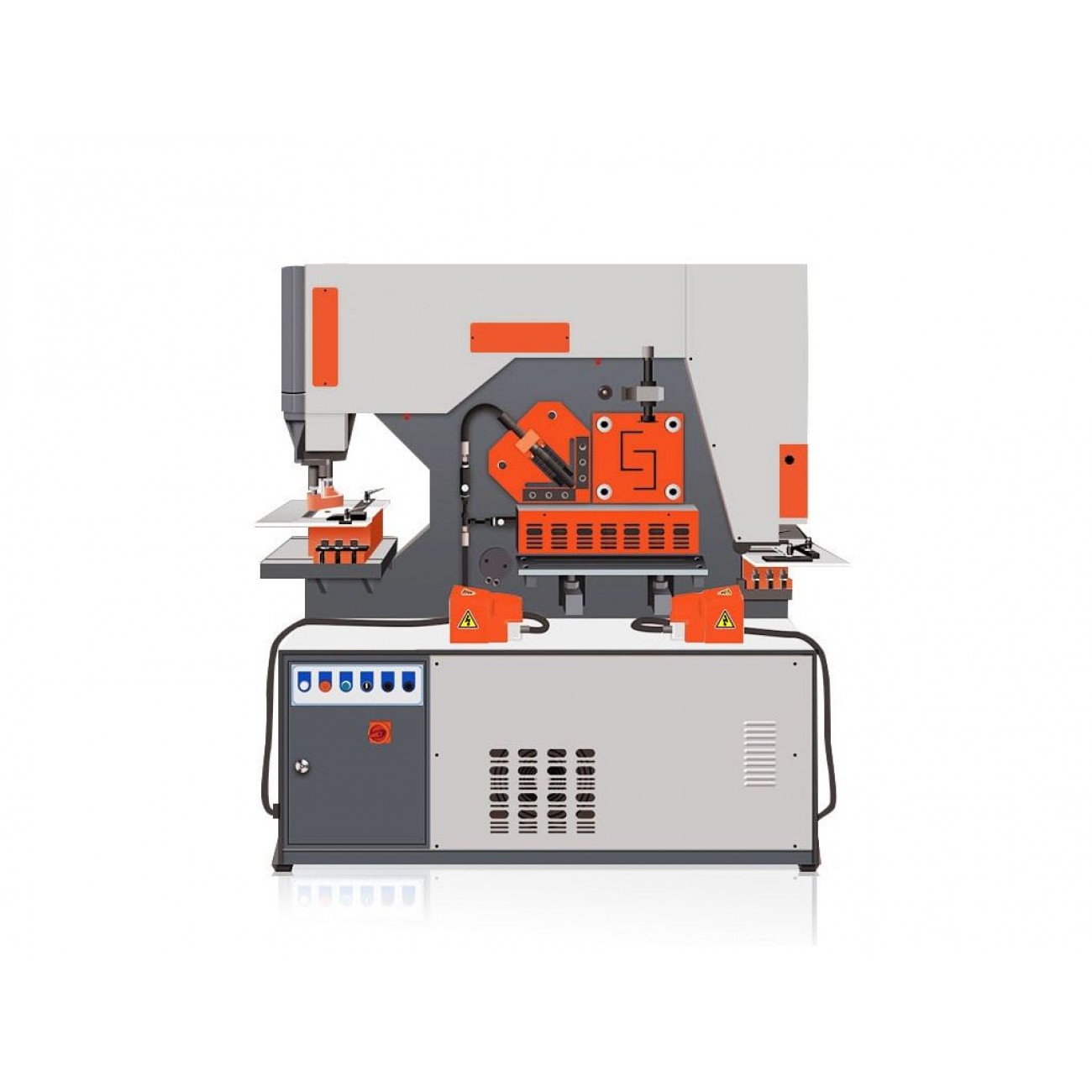Станція різання має механізми для різання кутника (як під 90°, так і під 45°), швелера та гільйотину для порізки плоскої сталі. Опційно може бути станція рубки круглого та квадратного прутка. Станція висікання оснащена П-подібною прямокутною висічкою, також дозволяє виконувати бічну висічку. Додатково верстат може бути укомплектований ножами для V-подібного висікання і механізмом V-подібного згинання з пуансоном і матрицею. Станція пробивання з координатними упорами, швидкозмінним інструментом і регульованим тримачем пробивного штампа дозволяє виконувати широкий діапазон отворів різної форми. Завдяки своїй універсальності, надійності і високій продуктивності, ці прес-ножиці гідравлічні будуть відмінним вибором для металообробних виробництв.