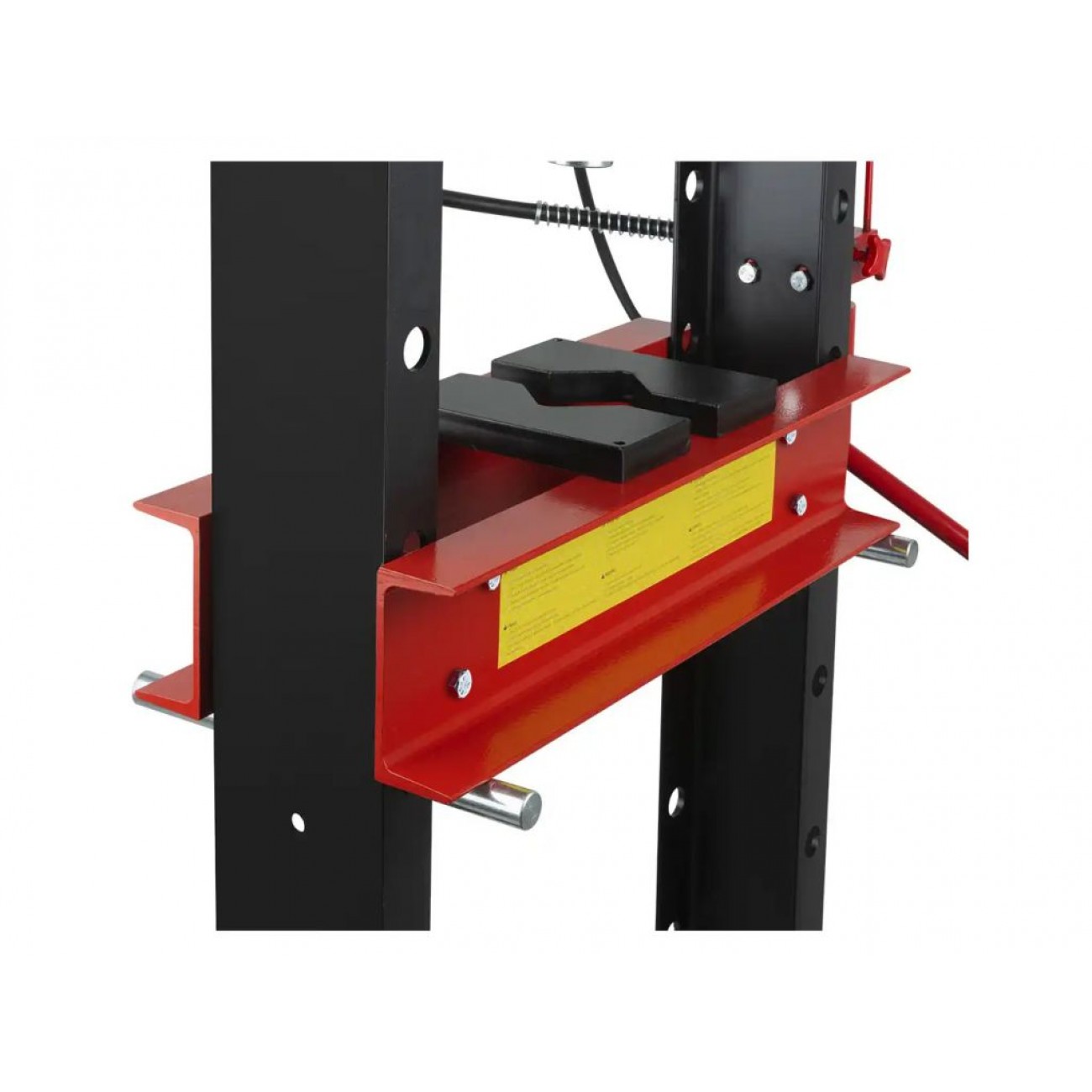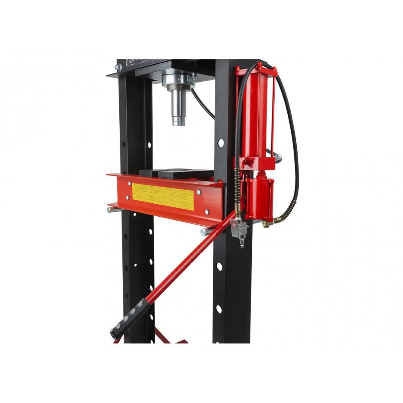 2 режими роботи, швидкий і повільний хід, дозволяють максимально точно регулювати зусилля. За допомогою простого клапана поршень автоматично повертається у початкове положення, що суттєво спрощує робочий процес. Конструкція з посиленим металевим каркасом вагою 125 кг надзвичайно міцна та стабільна. Функціональні характеристики і висока надійність роблять цей прес пневмогідравлічний для автосервісу надзвичайно ефективним для виконання навіть складних завдань.