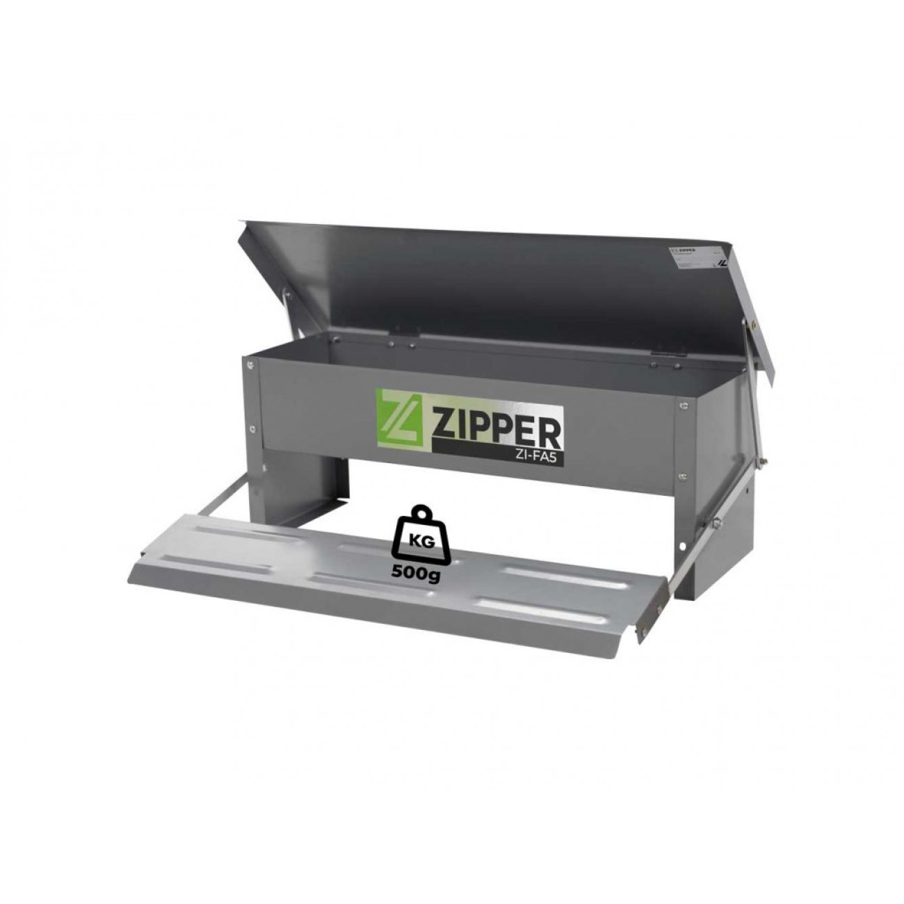 Годівниця для домашніх птахів Zipper ZI-FA5 - виготовлена з оцинкованого листового металу та є автоматичною. Захищає корм ваших курей/птиці від вітру, несприятливої погоди та небажаних гризунів. Контейнер важить майже 5 кг (з наповненням), а доступ до корму для ваших курей/птиці досягається, наступивши на сходинку, яка відкриває кришку з вантажем 500 г. Кришка закривається автоматично, коли вага сходинки більше не знижується.