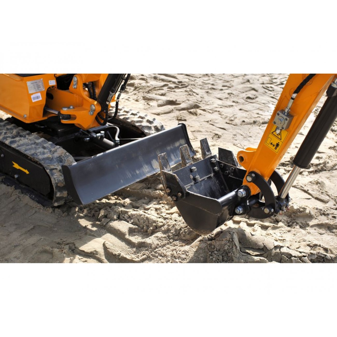 Екскаватор забезпечує глибину копання до 1650 мм і висоту розвантаження до 1850 мм. Стріла має поворот на 70° в обидві сторони. Елементи керування ергономічно сконструйовані, що дозволяє оператору максимально контролювати машину. Екскаватор сумісний з різними типами навісного обладнання, що робить його універсальним для різних застосувань.Цей функціональний міні екскаватор ціна якого досить вигідна, доступний для замовлення на KMA.UA.