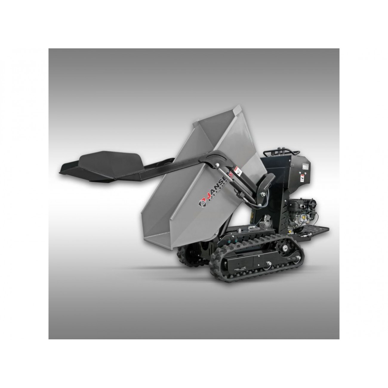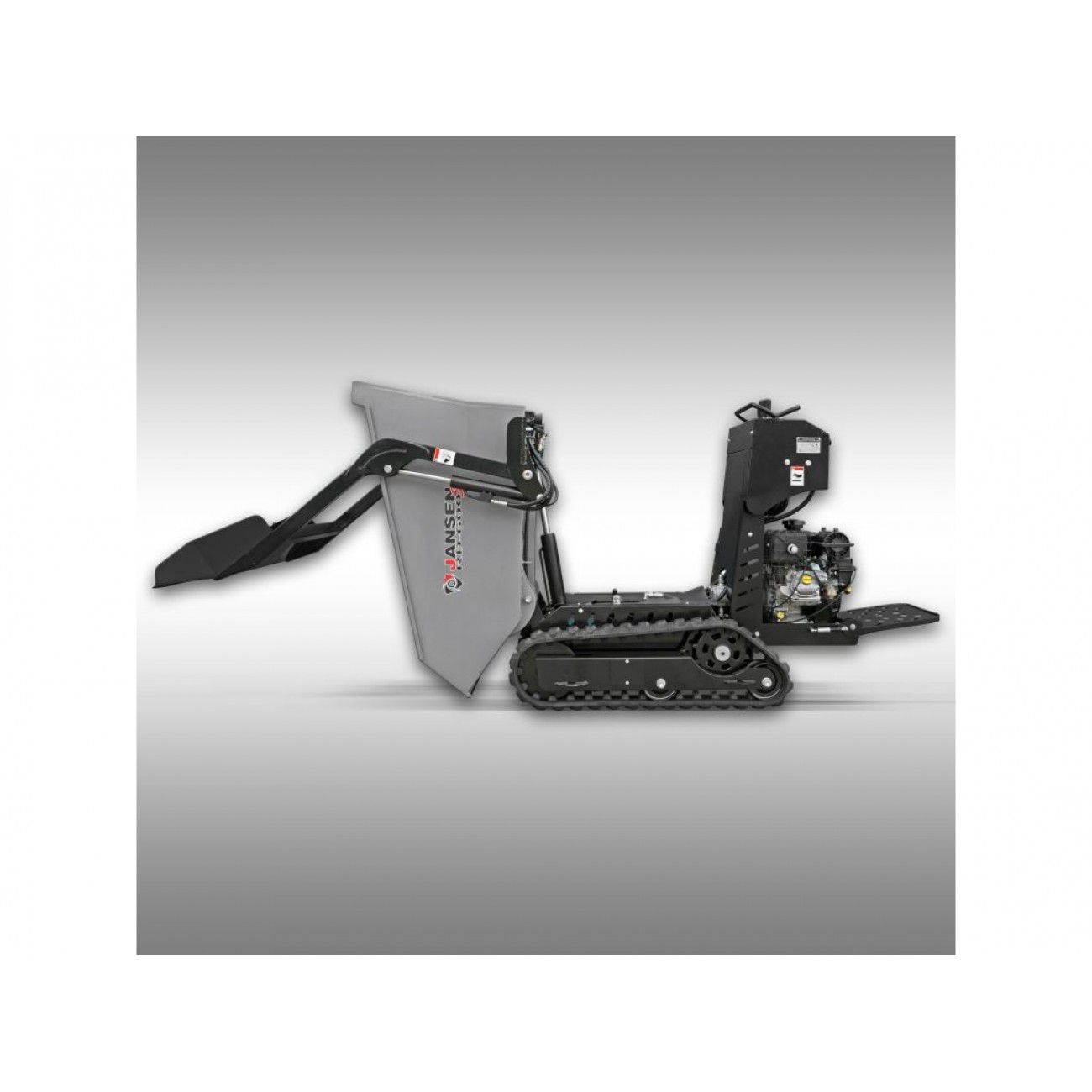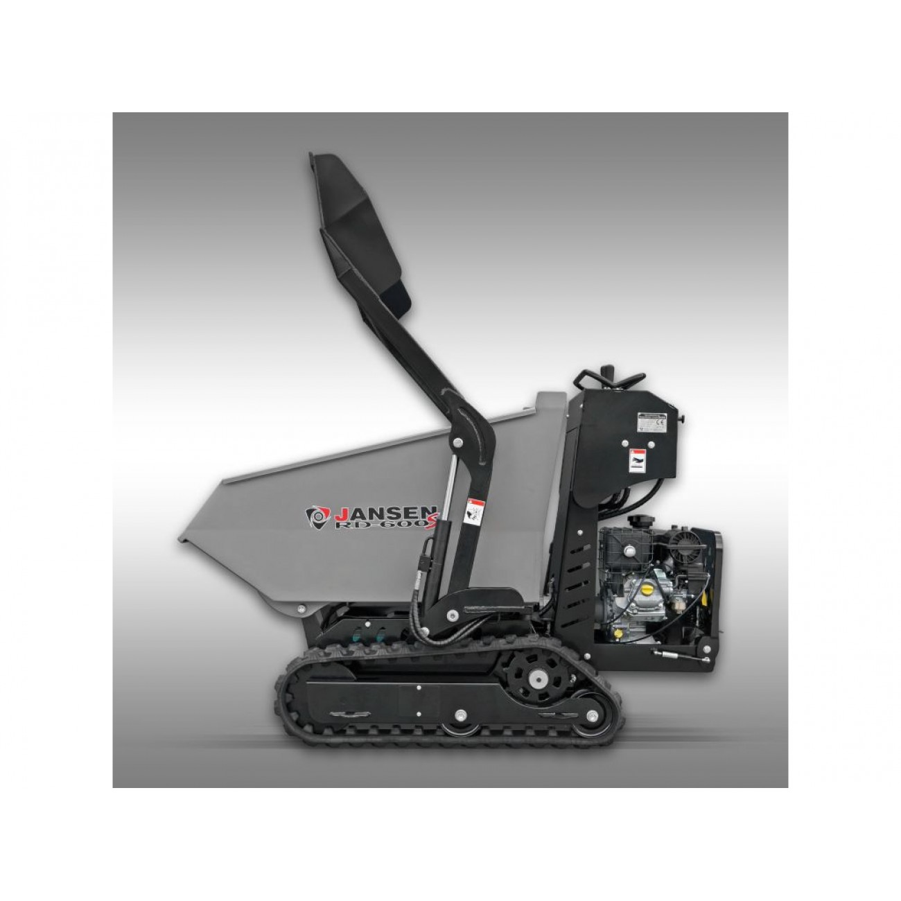 Гусеничний міні-самоскид Jansen RD-600S - це надійна та ефективна техніка для транспортування піску, грунту, гравію, каміння та інших матеріалів, яка має легке управління, відмінну маневреність, стійкість і високу прохідність на різних типах рельєфів. Вантажопідйомність на рівній місцевості становить 600 кг, на схилах до 17% - до 450 кг, на схилах до 30% - до 375 кг. Гідростатичний привід забезпечує плавне і точне регулювання швидкості, а гідравлічний самозавантажувальний ківш - швидке і легке завантаження матеріалів.