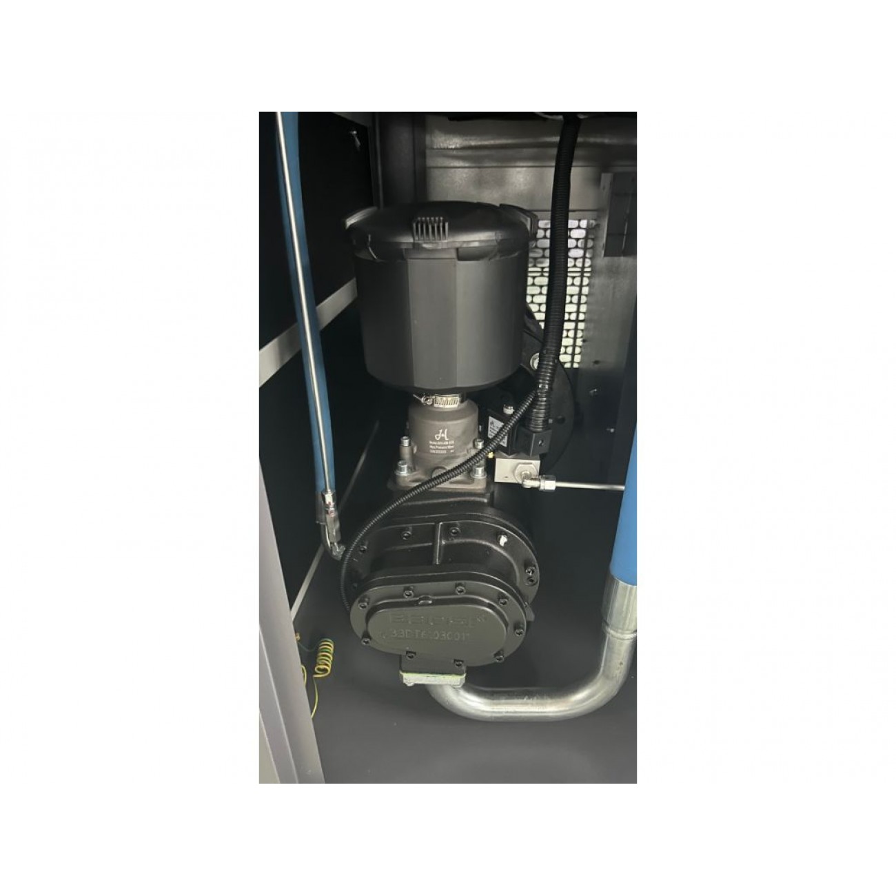 Інвертор регулює оберти двигуна відповідно до наявної потреби у стисненому повітрі, що дозволяє суттєво економити електроенергю та збільшити термін служби обладнання.
