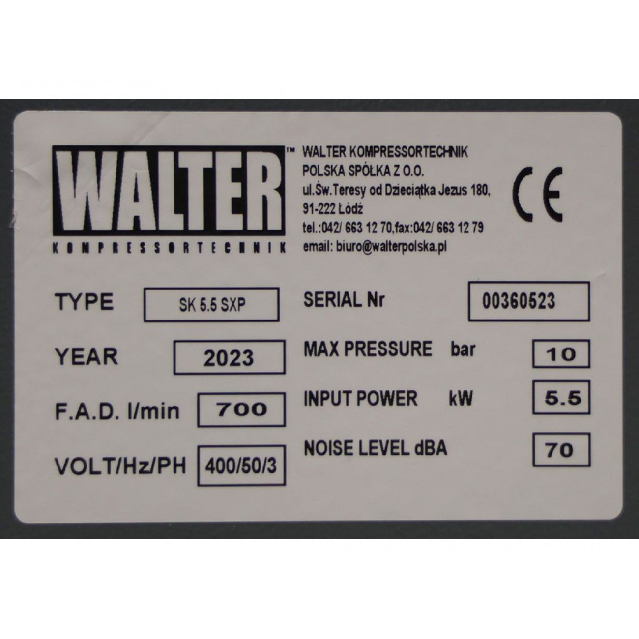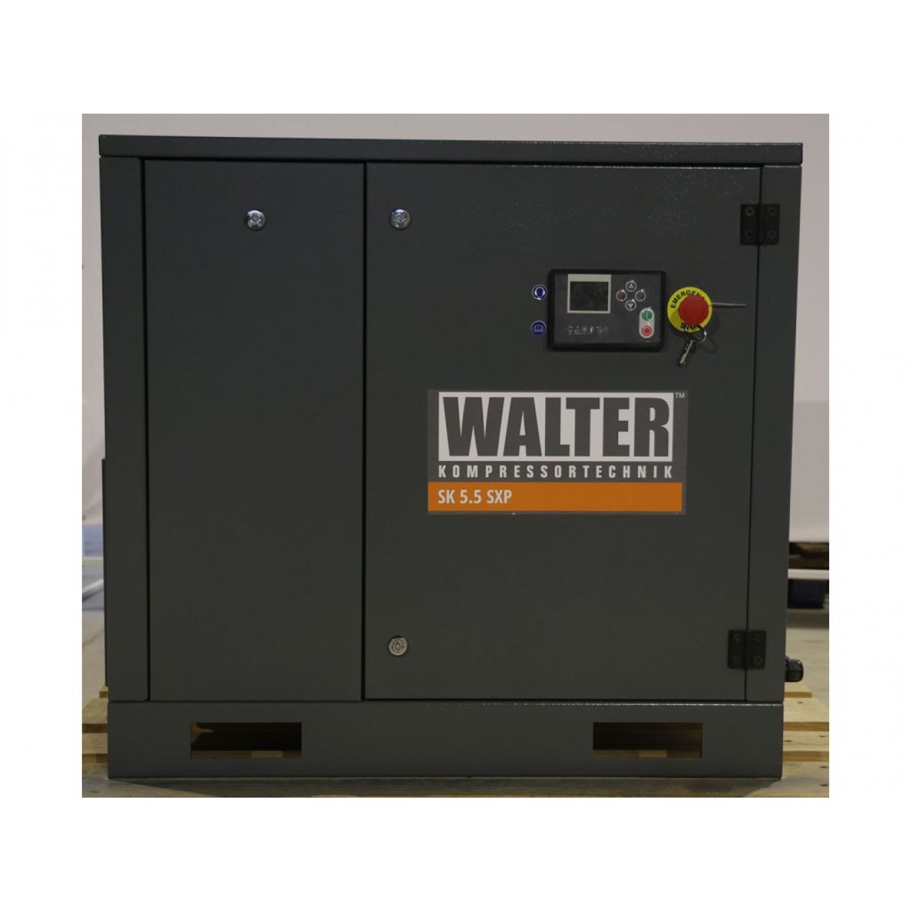Гвинтовий компресор з ремінним приводом WALTER SK 5,5 SXP з продуктивністю 700 л/ хв при 10 Бар здатний тривалий час підтримувати стабільну роботу потужного пневматичного обладнання і відмінно підходить для промислового застосування. Працює від трифазної мережі 400 В.